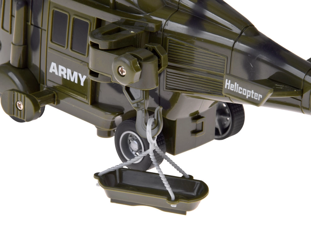 L’elicottero ha un rotore girevole e un verricello funzionante con cestello per sollevare piccoli oggetti. Il carro armato è dotato di torretta girevole e cannone mobile. Tutti i modelli sono in verde mimetico con stampe dell’esercito per la massima realisticità.