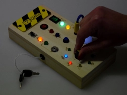 - LED in 5 colori (giallo, rosso, blu, arancione, verde), 4 interruttori (verde, rosso, nero, argento), 1 pulsante blu, 1 manopola girevole, 2 chiavette, 1 cavo di collegamento