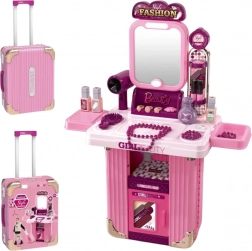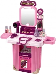 Elegante toeletta 2in1 per bambini in una pratica valigetta che, una volta aperta, si trasforma in un magico tavolino da trucco. Offre specchietto illuminato, effetti sonori e un ricco set di accessori per giocare al salone di bellezza. Leggera e mobile grazie a ruote e maniglia estraibile, realizzata con materiali sicuri – favorisce creatività, immaginazione e motricità fine.