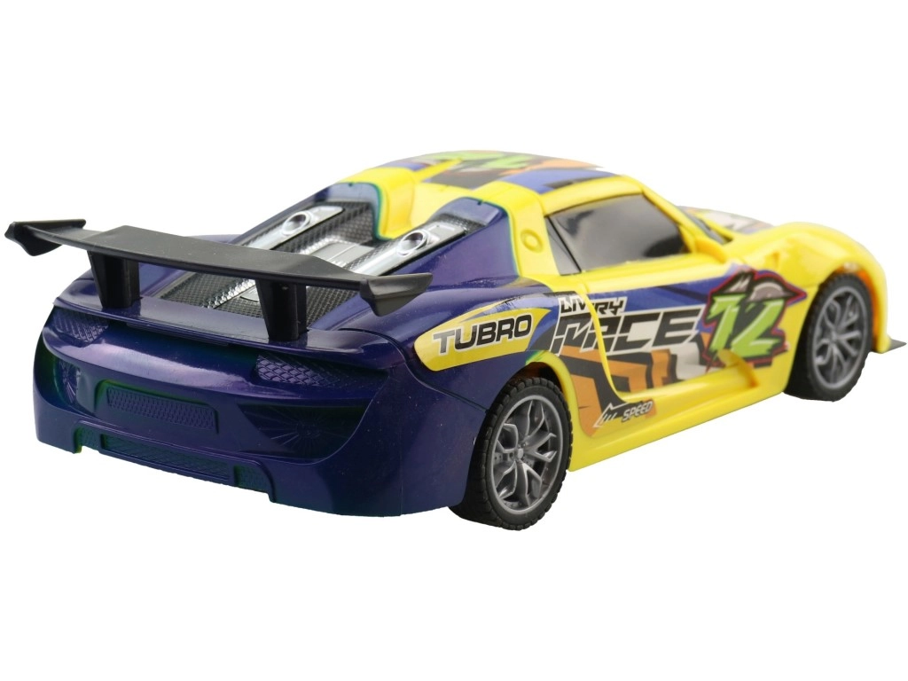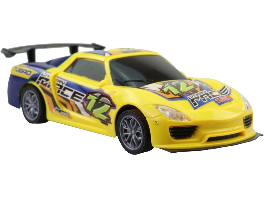 La carrozzeria sportiva con alettone, adesivi da gara e ruote dettagliate entusiasmerà i piccoli amanti della velocità e li motiverà al gioco creativo.
