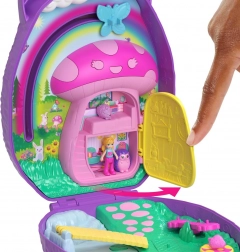 Scopri un mondo magico in tasca con la borsetta compatta Polly Pocket Famiglia di ricci – un set di gioco portatile con micro-bamboline, animaletti e tanti accessori. Apri la dolce borsetta a forma di riccio e ti aspettano due volte divertimento: giardino magico e nido degli animaletti. I bambini adoreranno gli elementi interattivi come “dare da mangiare” al piccolo riccio e il suo pannolino “bagnato”, l’altalena movibile, la casetta a fungo e la possibilità di volare nel cielo grazie al meccanismo scorrevole.