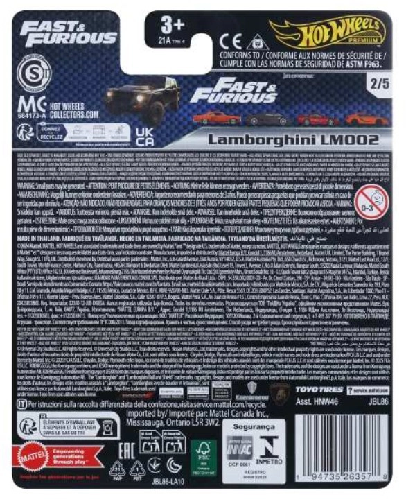 Goditi lo stile iconico e le prestazioni con l’esclusivo modello LAMBORGHINI LM002 della collezione Hot Wheels Fast & Furious. La finitura premium con dettagli realistici cattura fedelmente l’atmosfera dei film ed è ideale sia in vetrina che in pista.