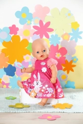 La vivace stampa di fiori e del simpatico coniglietto dona alla bambola BABY BORN uno stile unico e stimola il gioco immaginativo.