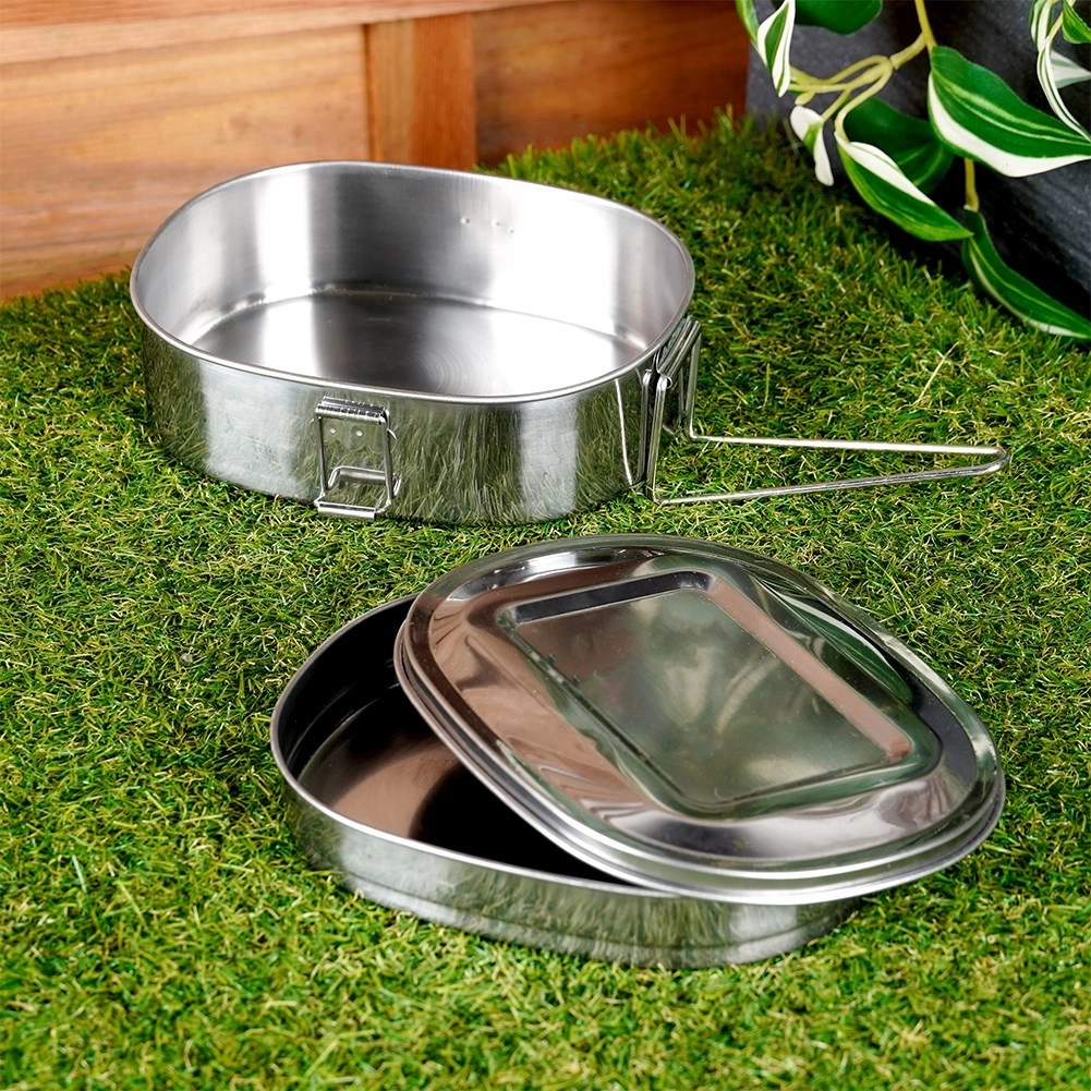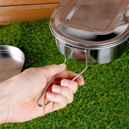 Grazie alla struttura resistente, la mensa è durevole, sicura per gli alimenti e facile da pulire. Perfetta per escursionismo, campeggio, scuola e lavoro. Avvertenza: i contenitori non sono destinati al riscaldamento dei cibi e non sono 100% ermetici (senza guarnizione) – trasportare i piatti liquidi in posizione verticale.