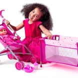 Questo bellissimo set include tutto ciò di cui il tuo bambino ha bisogno per prendersi cura della sua bambola preferita. Incluso c'è un passeggino sportivo con struttura in metallo, che è estremamente pratico grazie alla sua facile manovrabilità. Inoltre, vi è incluso un lettino da viaggio, ideale per giocare sia a casa che all'aperto.