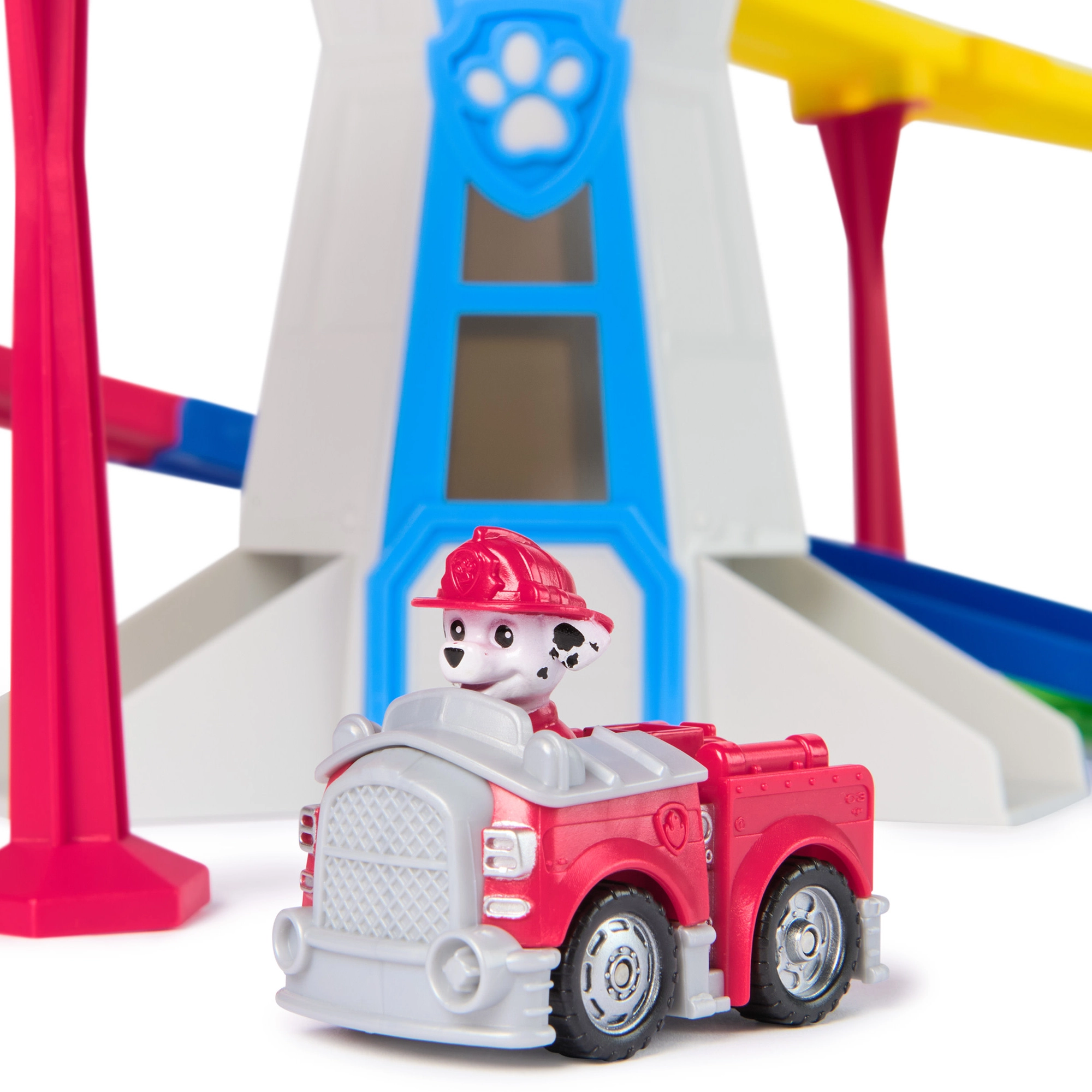 Questo robusto e colorato playset ispirato al mondo di PAW PATROL porta i bambini a Adventure Bay. La torre con dettagli realistici e due rampe larghe permette di lanciare i veicoli direttamente nell’azione: basta posizionare la macchinina in cima e partire per una missione di salvataggio.