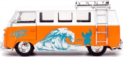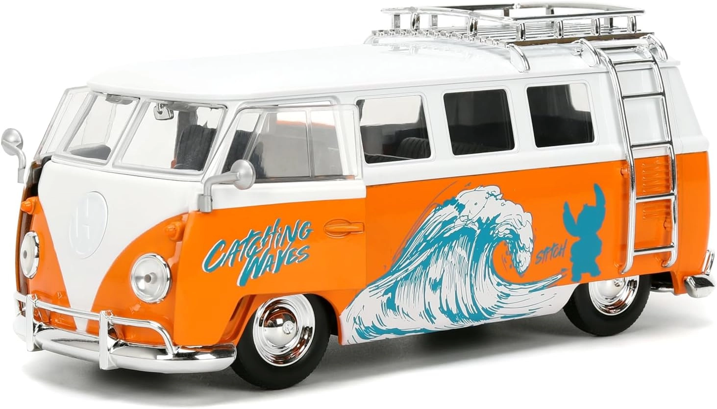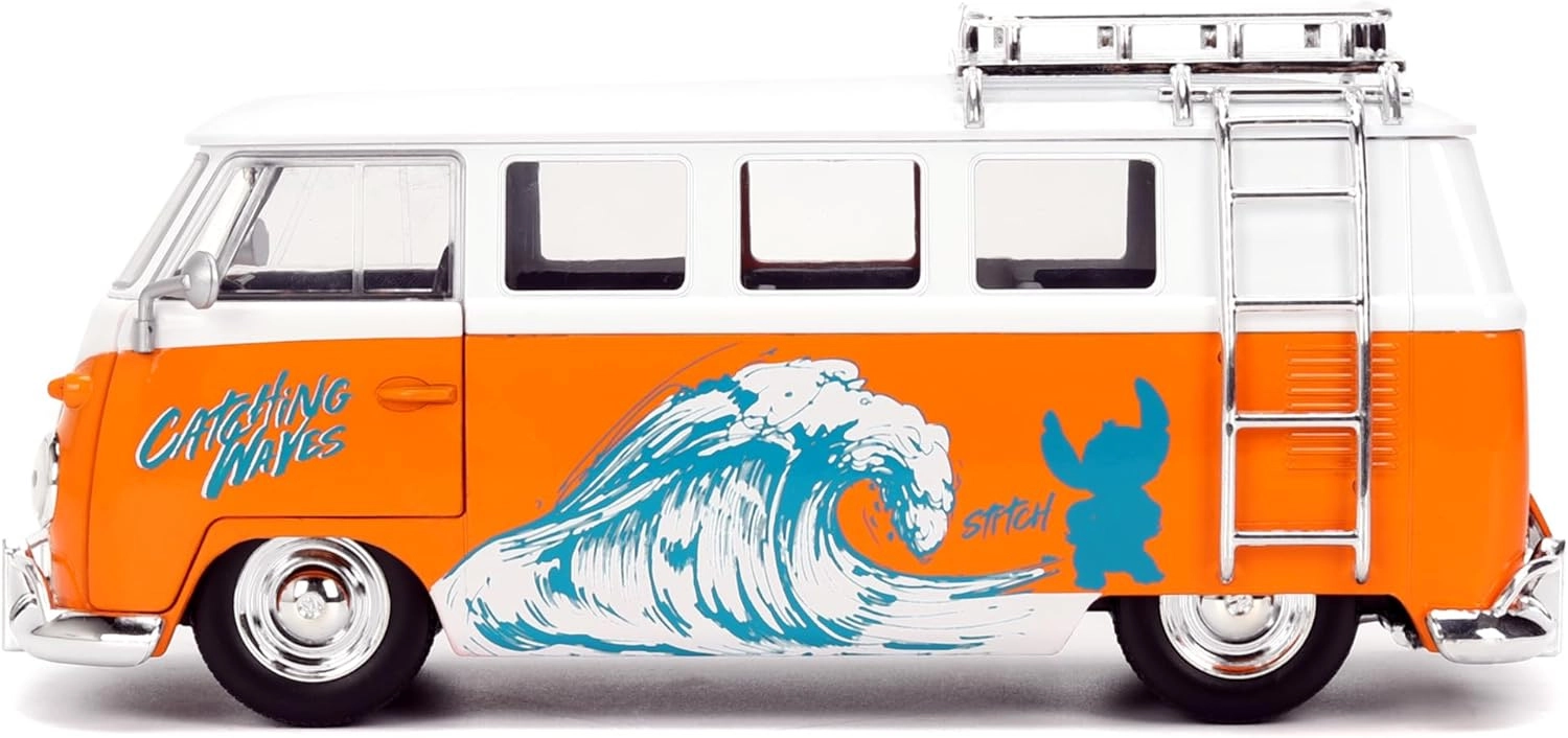 Il modello in scala 1:24 offre parti apribili (porte), interni dettagliati, elementi cromati e scorrevolezza delle ruote per un facile movimento sulle superfici. Inclusa anche la figurina di STITCH alta circa 4 cm, perfettamente abbinata alla grafica a tema “Catching Waves”.