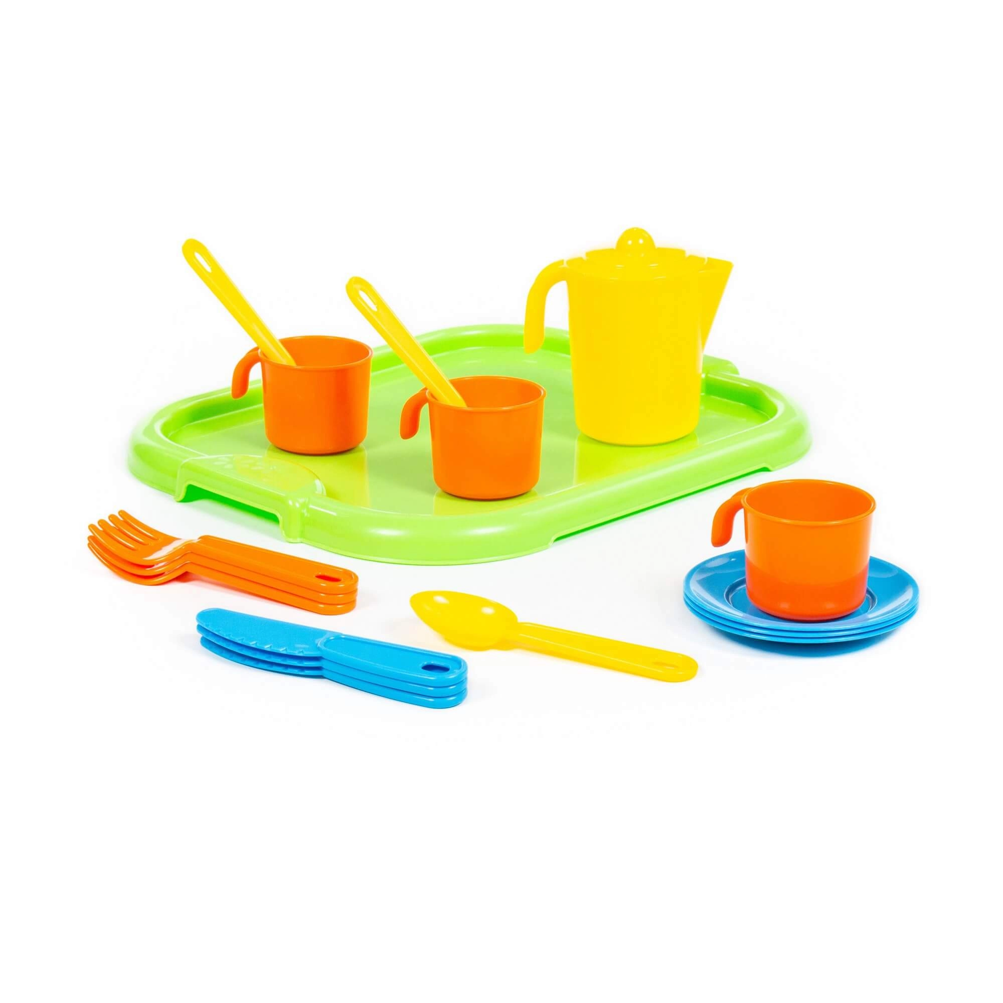 Colorato set da tè per tre per bambini con pratico vassoio, ideale per giocare al tè. Plastica leggera e resistente, design sicuro e colori vivaci stimolano la fantasia. Perfetto per bambini dai 3 anni.