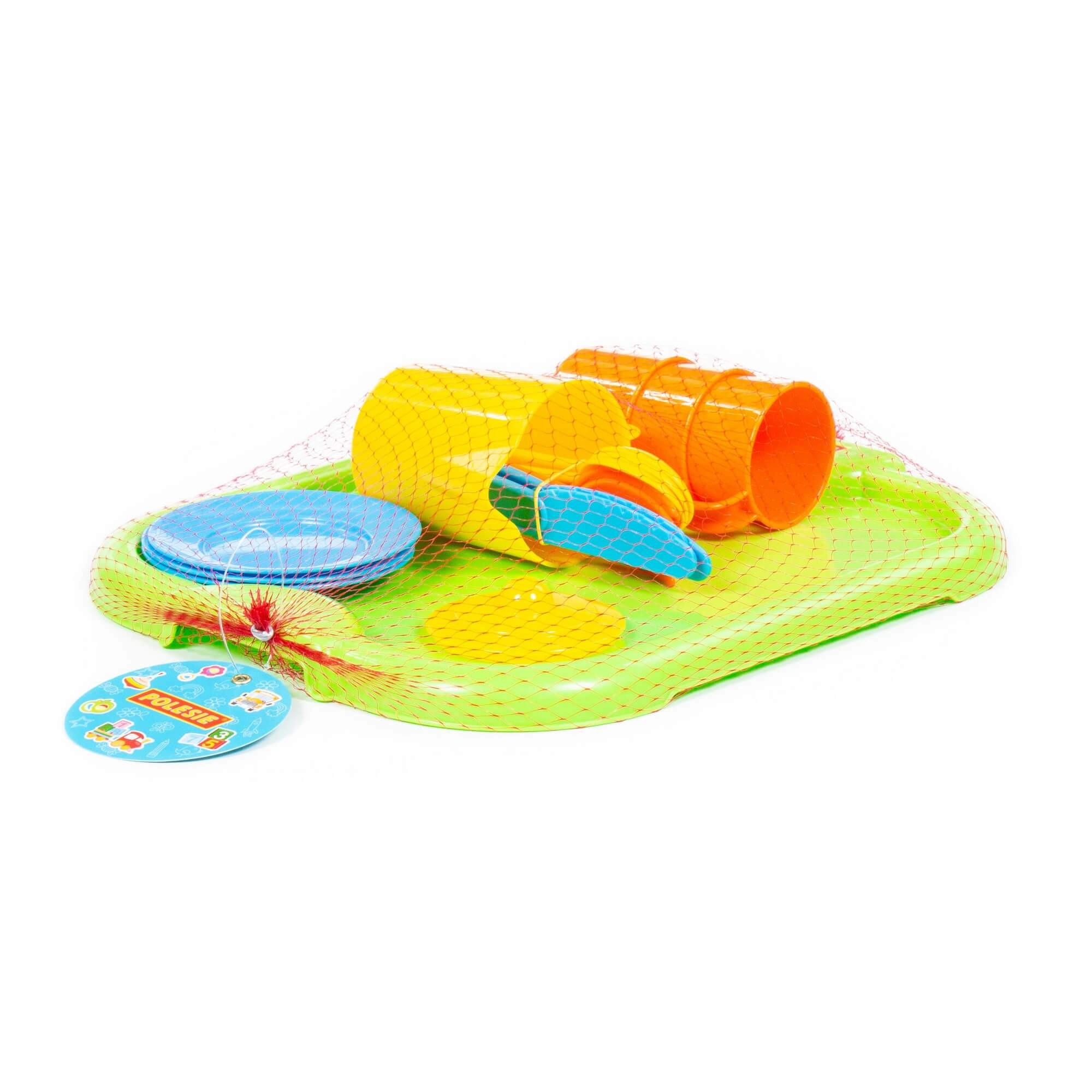 Il vassoio verde aiuta i bambini a trasportare e riordinare tutti i pezzi in una volta.