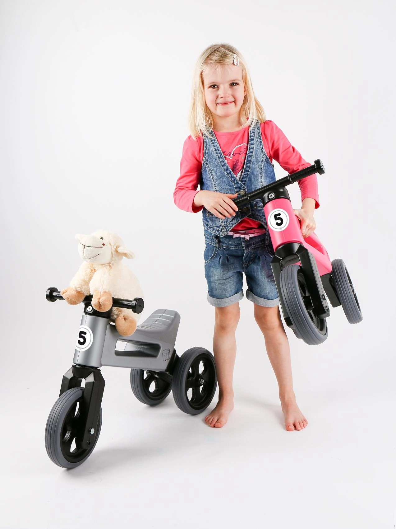 Inizia con un triciclo stabile e, quando è il momento di allenare l’equilibrio, sostituisci semplicemente le due ruote posteriori con una sola. Ideale per un passaggio fluido alla prima bici.