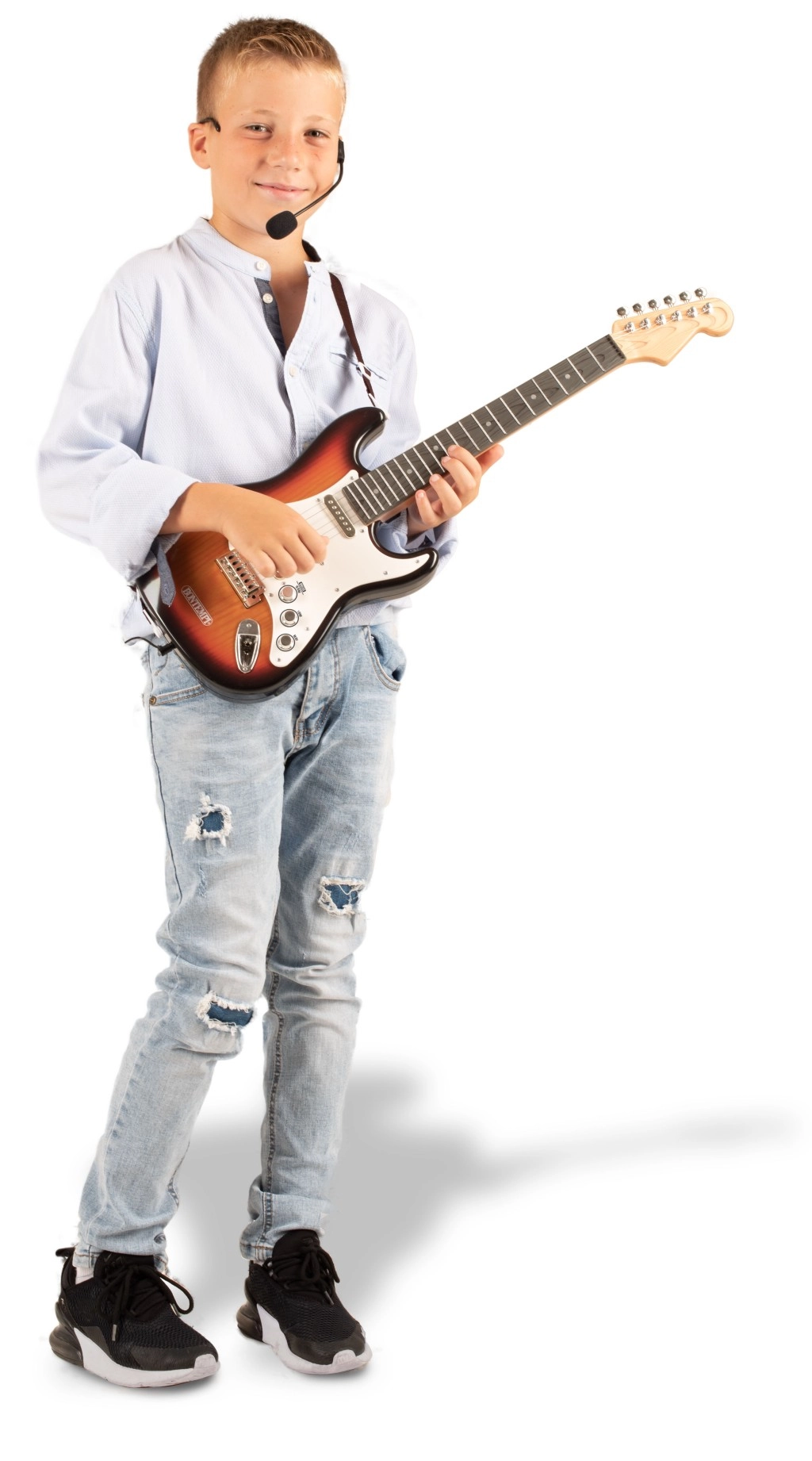 Questa stilosa chitarra elettrica per bambini è ideale per i primi passi nel mondo della musica. Offre una connessione wireless, così i bambini possono godere della libertà di movimento mentre suonano e cantano. Nella confezione trovi microfono con headset e una pratica tracolla per un'autentica esperienza da concerto.
