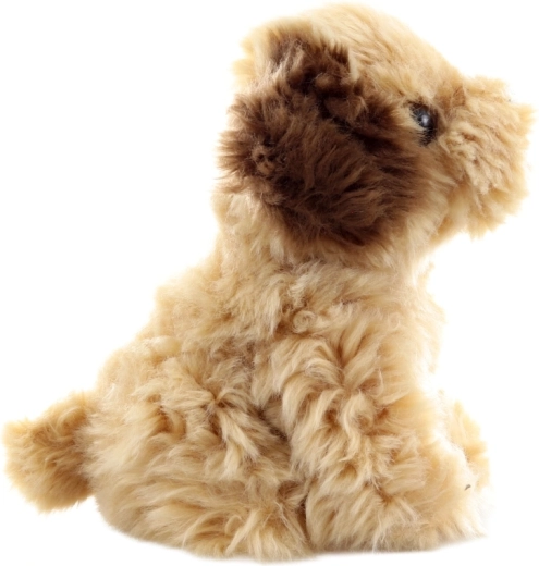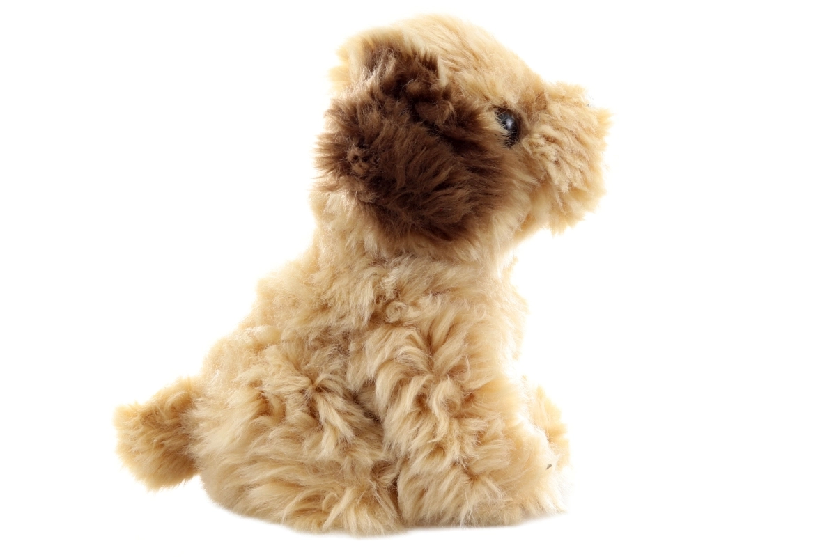 Orecchiette più scure, nasino nero e posa seduta donano al giocattolo l’aspetto fedele di un vero cucciolo.