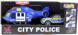 Il set City Police farà felici i piccoli fan dei servizi di emergenza. Include un elicottero della polizia con effetti luminosi e sonori e un auto della polizia con trazione meccanica. L’elicottero ha rotori rotanti, porte apribili e un gancio di salvataggio, così i bambini possono vivere missioni d’azione, inseguimenti e interventi. Realizzato con materiali sicuri e resistenti, ideale per giocare in casa e all’aperto.