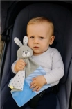 Il doudou coniglietto BABY MIX in colore blu diventerà presto il compagno preferito del tuo bebè. È realizzato con materiali di qualità e sicuri, delicati sulla pelle sensibile dei bambini. Il design adorabile stimola la percezione e rassicura durante l'addormentamento.