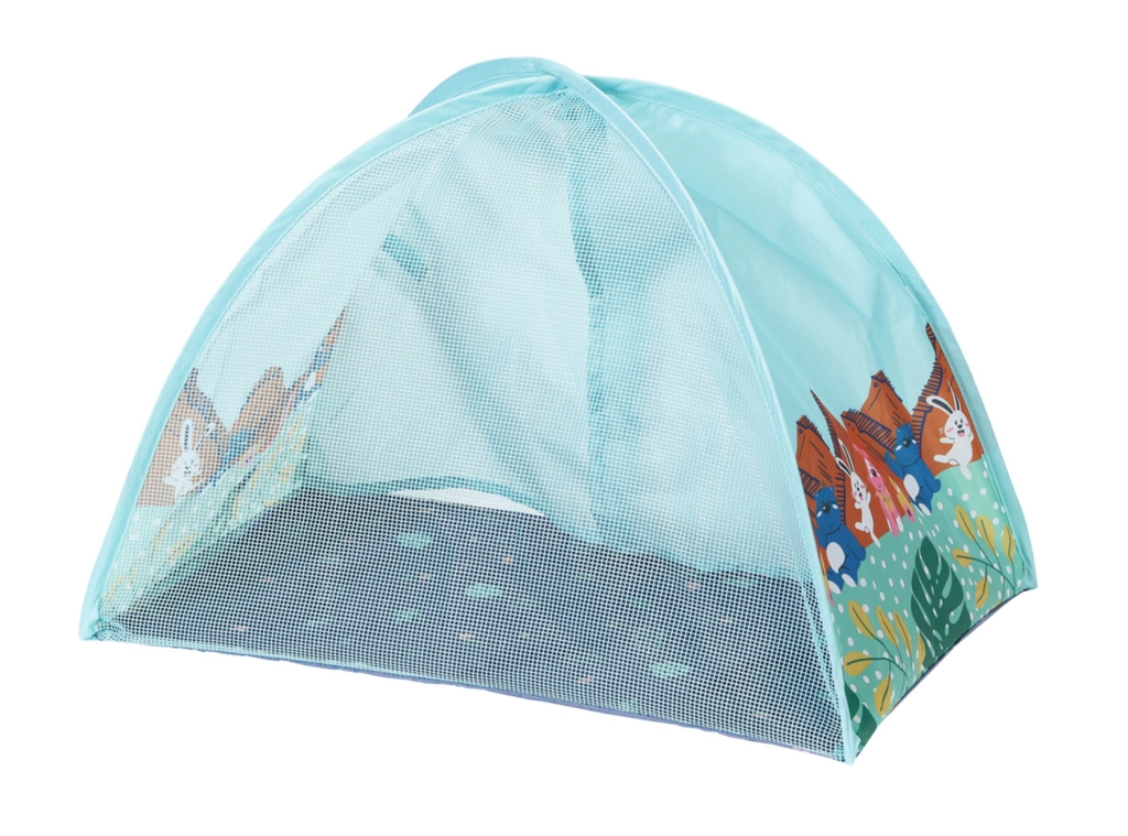 - Tenda di colore turchese con motivi di animali che offre un ottimo rifugio