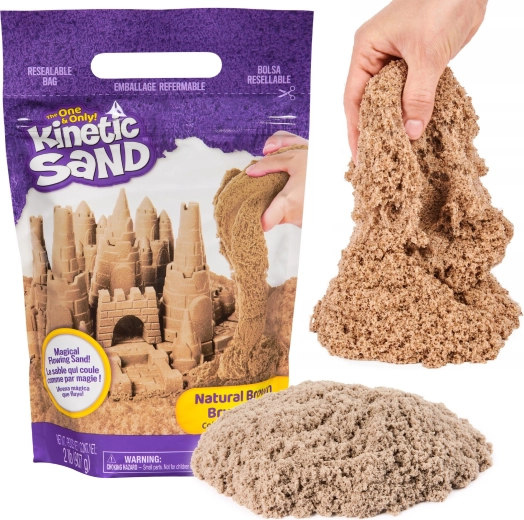 La sabbia cinetica nella tonalità marrone offre un'esperienza sensoriale rilassante per bambini e adulti. È piacevolmente friabile ma coesa: scorre lentamente tra le dita e al contempo mantiene perfettamente la forma, così puoi creare lettere, torri, formine e costruzioni dettagliate. Non si secca, si riordina facilmente e durante il gioco non fa polvere.