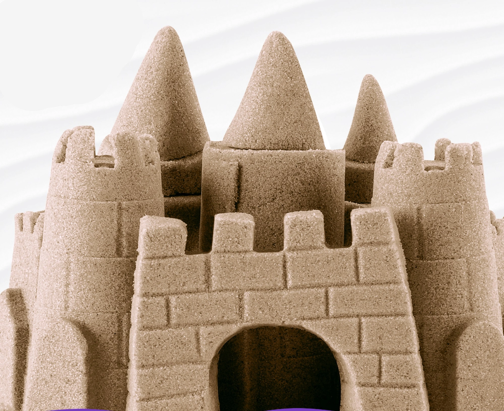 I granelli si attraggono tra loro, rendendo la sabbia coesa, modellabile e meno disordinata. Ideale per costruire castelli, lettere e forme dettagliate.