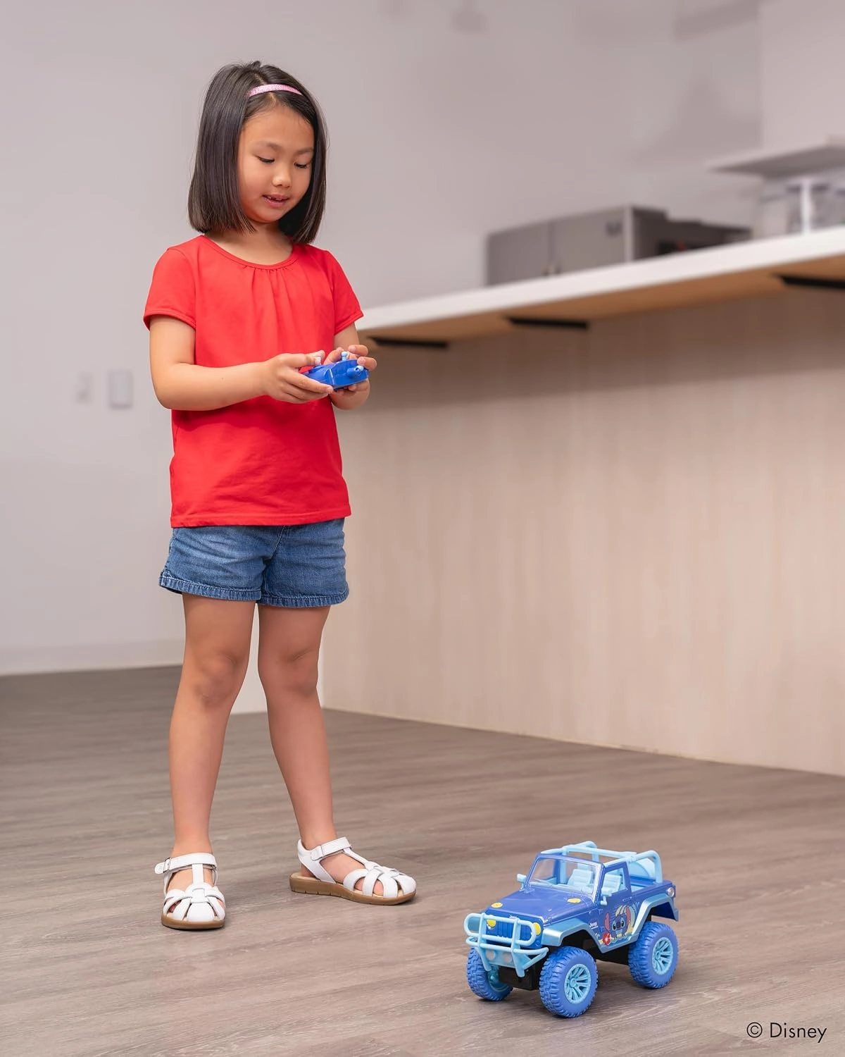 Il modello in scala 1:16 misura circa 29 cm di lunghezza, con assetto rialzato e parafanghi pronunciati. Nella confezione trovi un radiocomando intuitivo e un foglio di adesivi per personalizzare l’estetica. Regalo perfetto per i fan di Lilo & Stitch e per tutti i bambini che amano la guida dinamica e il gioco creativo.