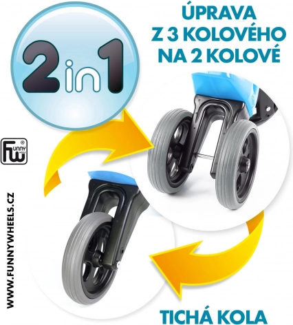 La leggera e resistente bicicletta senza pedali Funny Wheels Rider Sport 2in1 cresce con il bambino a partire da 18 mesi. In pochi istanti la trasformi da triciclo a bicicletta a due ruote, offre due altezze della sella, pneumatici silenziosi antiscivolo, limitazione dell’angolo di sterzata e grip di sicurezza per i piccoli piloti.