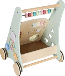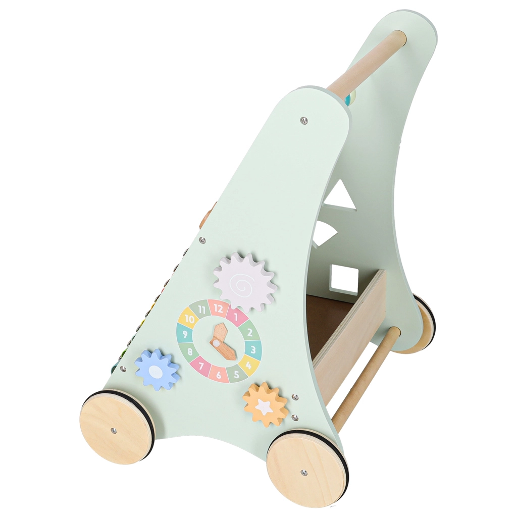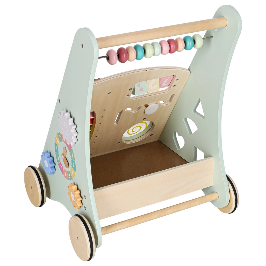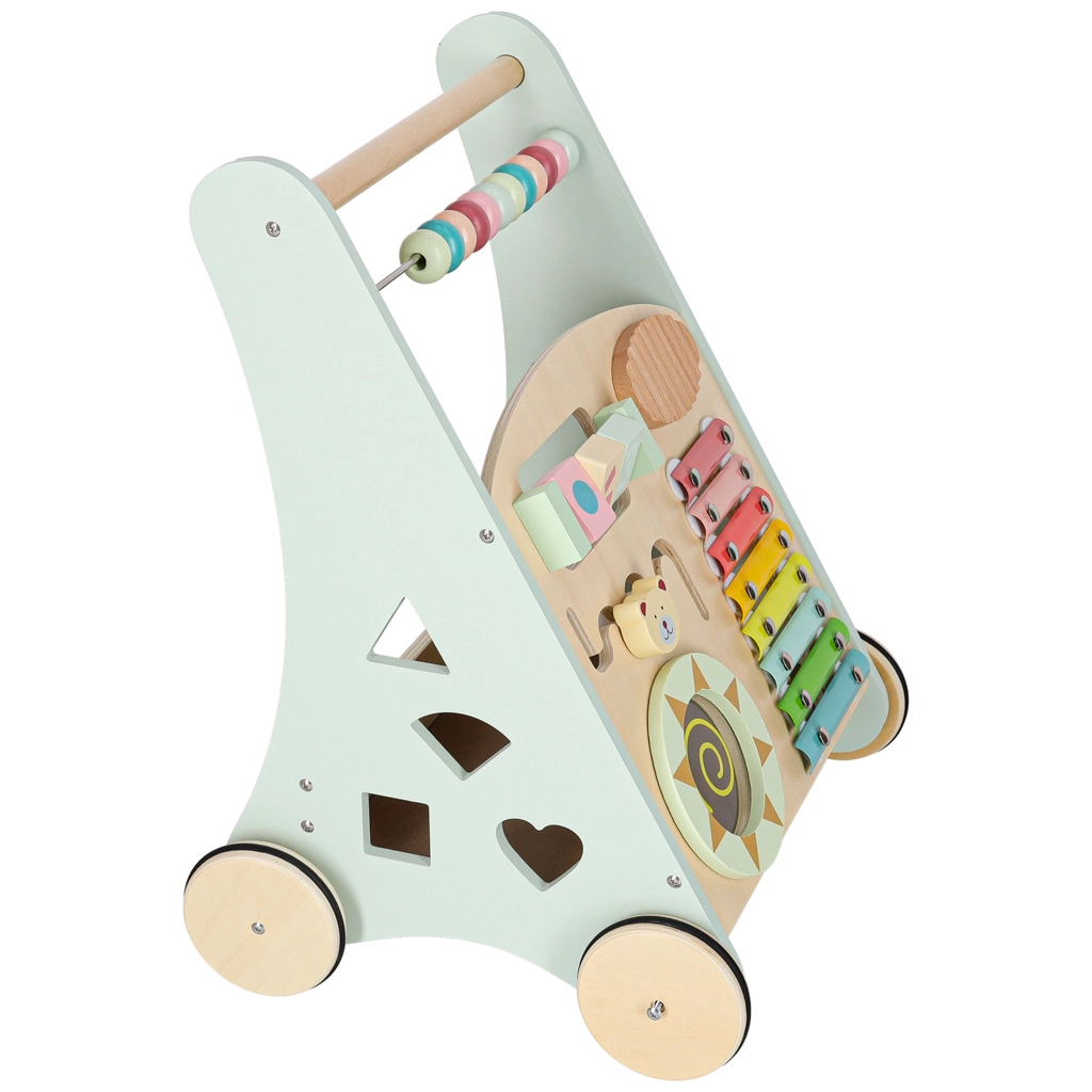 Il robusto girello in legno con abaco e ricco pannello attività aiuta i bambini dai 12 mesi a imparare a camminare e a scoprire il mondo. Offre xilofono, abaco, scatola incastri forme, ingranaggi, labirinto con perline e orologio. Grazie alla struttura solida, alle ruote gommate e ai colori a base d’acqua sicuri sviluppa motricità, sensi e logica – e il divertimento dura davvero a lungo.