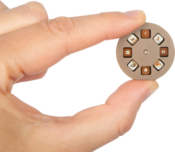 Questo moderno gioco da piccoli esploratori combina una pratica torcia con un proiettore di immagini che proietta motivi didattici su pareti, soffitto o pavimento. I bambini imparano in modo giocoso biologia, botanica e astronomia, mentre allenano la motricità fine cambiando i dischi illustrati.
