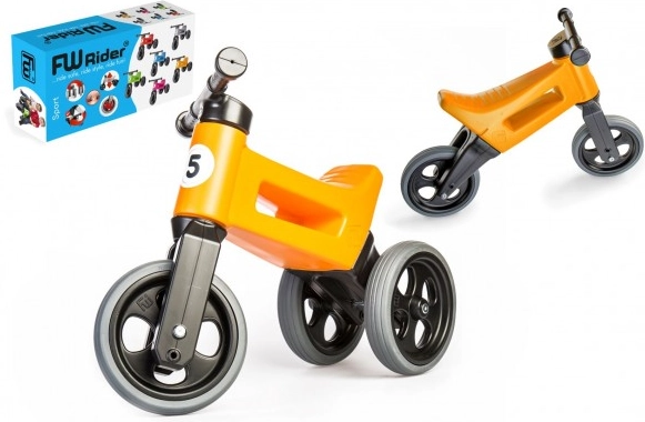 La leggera bicicletta senza pedali FUNNY WHEELS Rider Sport 2-in-1 cresce con il bambino grazie alla facile trasformazione da triciclo a bicicletta a due ruote. Offre altezza della sella regolabile 28/30 cm, ruote morbide e silenziose resistenti alle forature e limitazione sicura dell’angolo di sterzata. Ideale per bambini da 18 mesi con portata massima di 25 kg, realizzata in plastica atossica nella Repubblica Ceca.