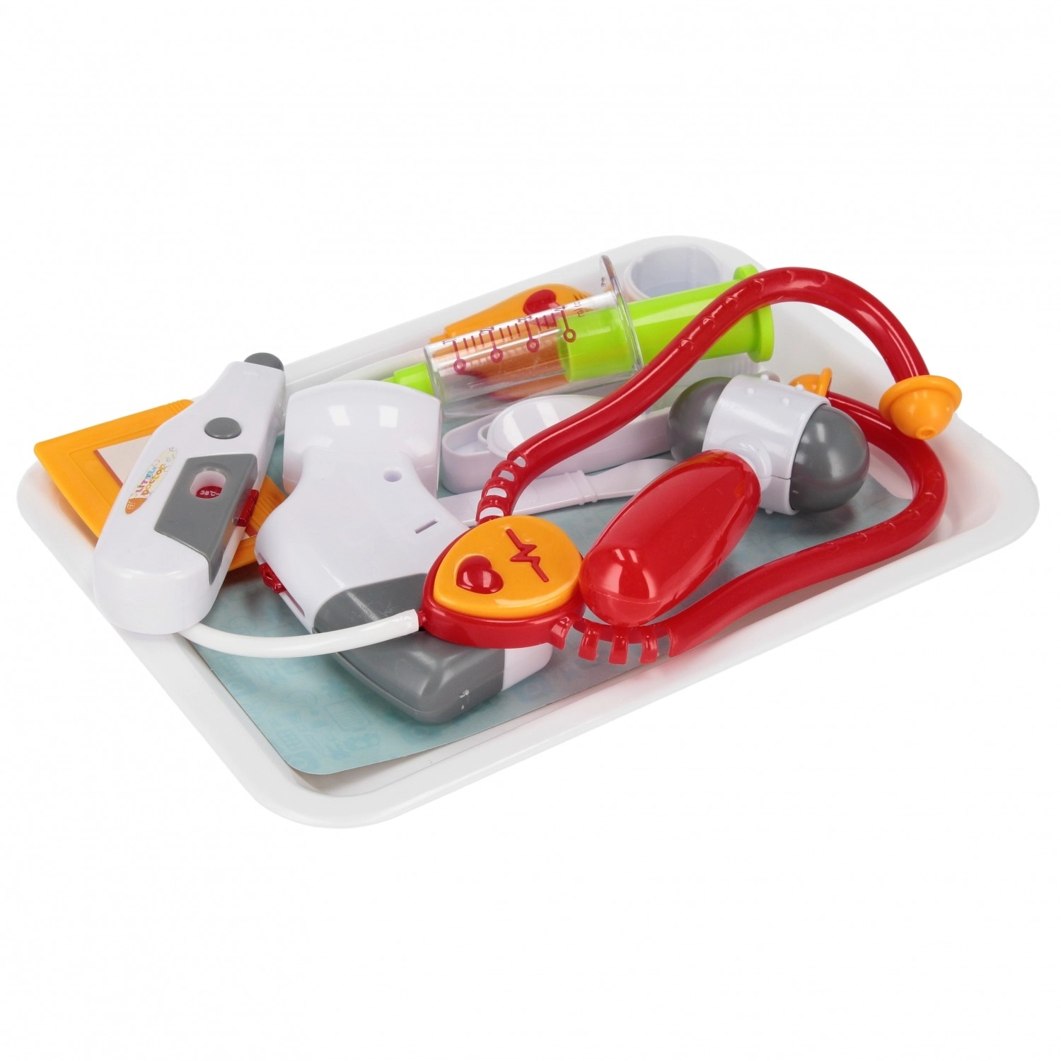 Nella confezione trovi anche vassoio, pinzetta, cerotto, cucchiaino e tesserino identificativo – tutto per lunghe ore di divertimento creativo di role play.