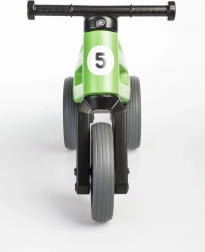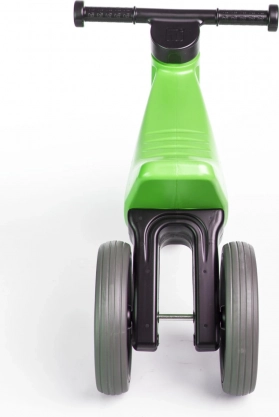 La sicurezza è garantita dal limitato angolo di sterzo della forcella, dalle estremità larghe delle manopole che proteggono le mani e dalle ruote larghe che offrono stabilità. La struttura leggera (solo 1,9 kg) facilita il trasporto e la maneggevolezza. La balance bike aiuta a sviluppare motricità, equilibrio e coordinazione e motiva i bambini a passeggiate più lunghe e divertenti.