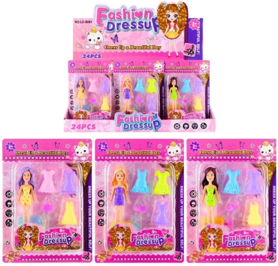 Una graziosa bambola da vestire con accessori porterà ai bambini tanto divertimento e creatività. Include tre abiti diversi e una borsetta, così i bambini possono creare le proprie combinazioni di moda. Un ottimo giocattolo per piccole stiliste che amano il mondo della moda e delle bambole. Mix di varianti di colore. Adatto ai bambini dai 3 anni. Prezzo per pezzo.