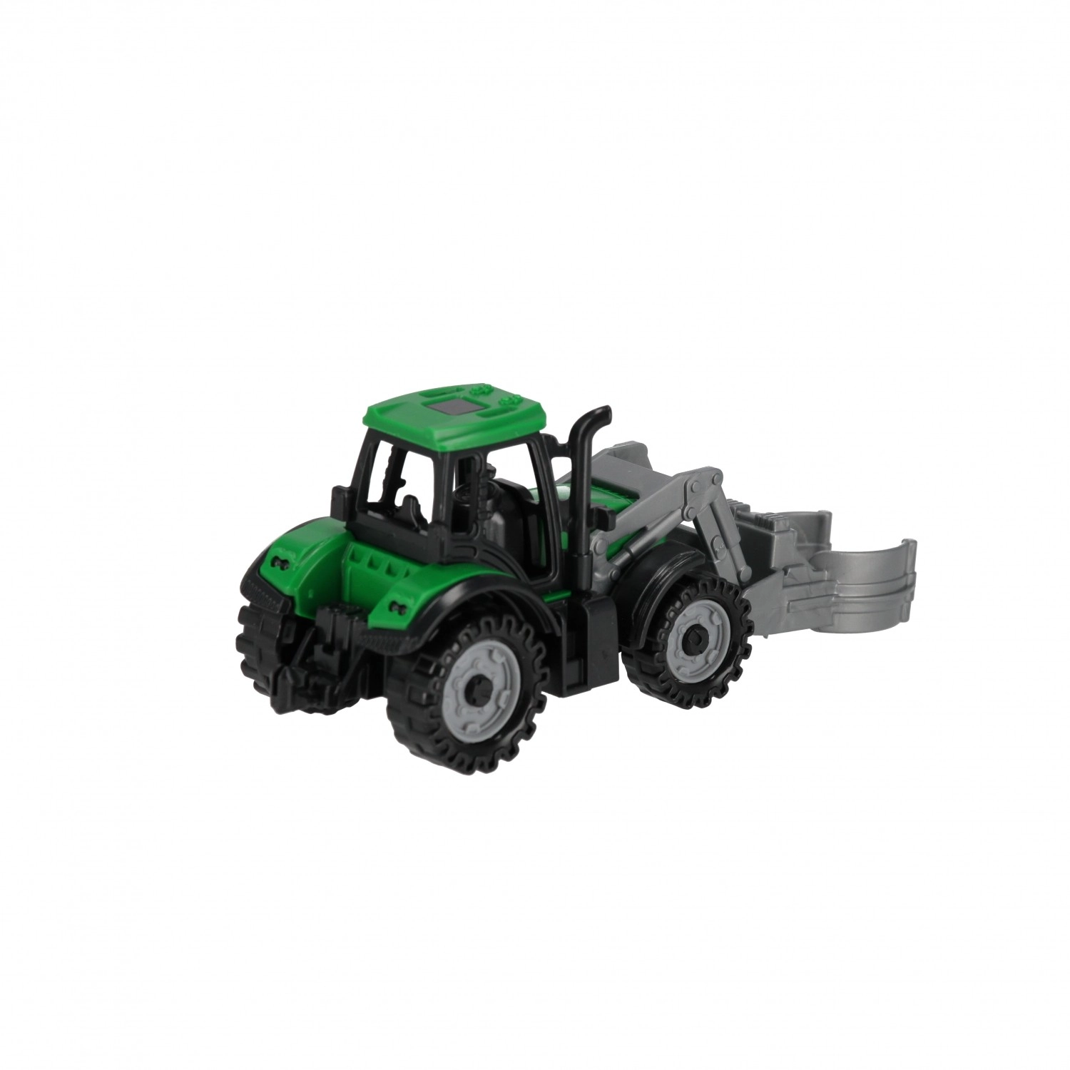 Trattore compatto con cabina dettagliata e benna funzionante, ideale per le piccole mani e per lo sviluppo della motricità.