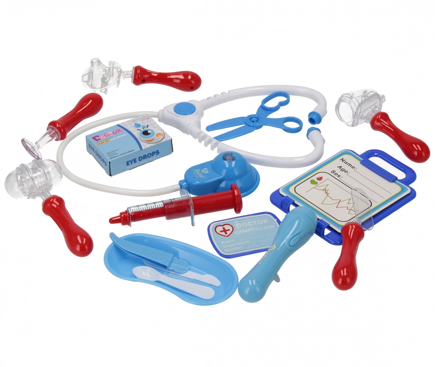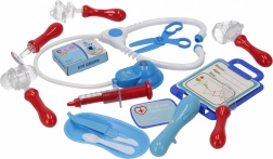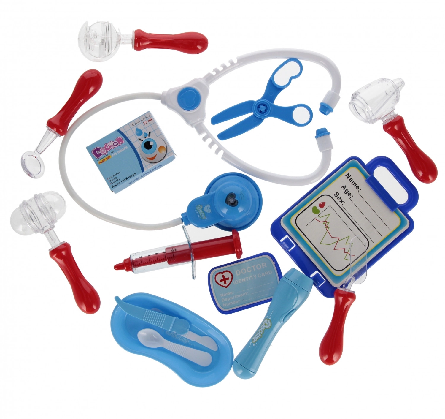 Il kit contiene tutto il necessario per un esame di base: stetoscopio, siringa, “medicine” in cartone, torcia, accessori laringologici, contenitore per strumenti, scheda paziente e forbici. Grazie alle dimensioni di 40 × 29 cm, il set è facile da trasportare e ricco di contenuti.