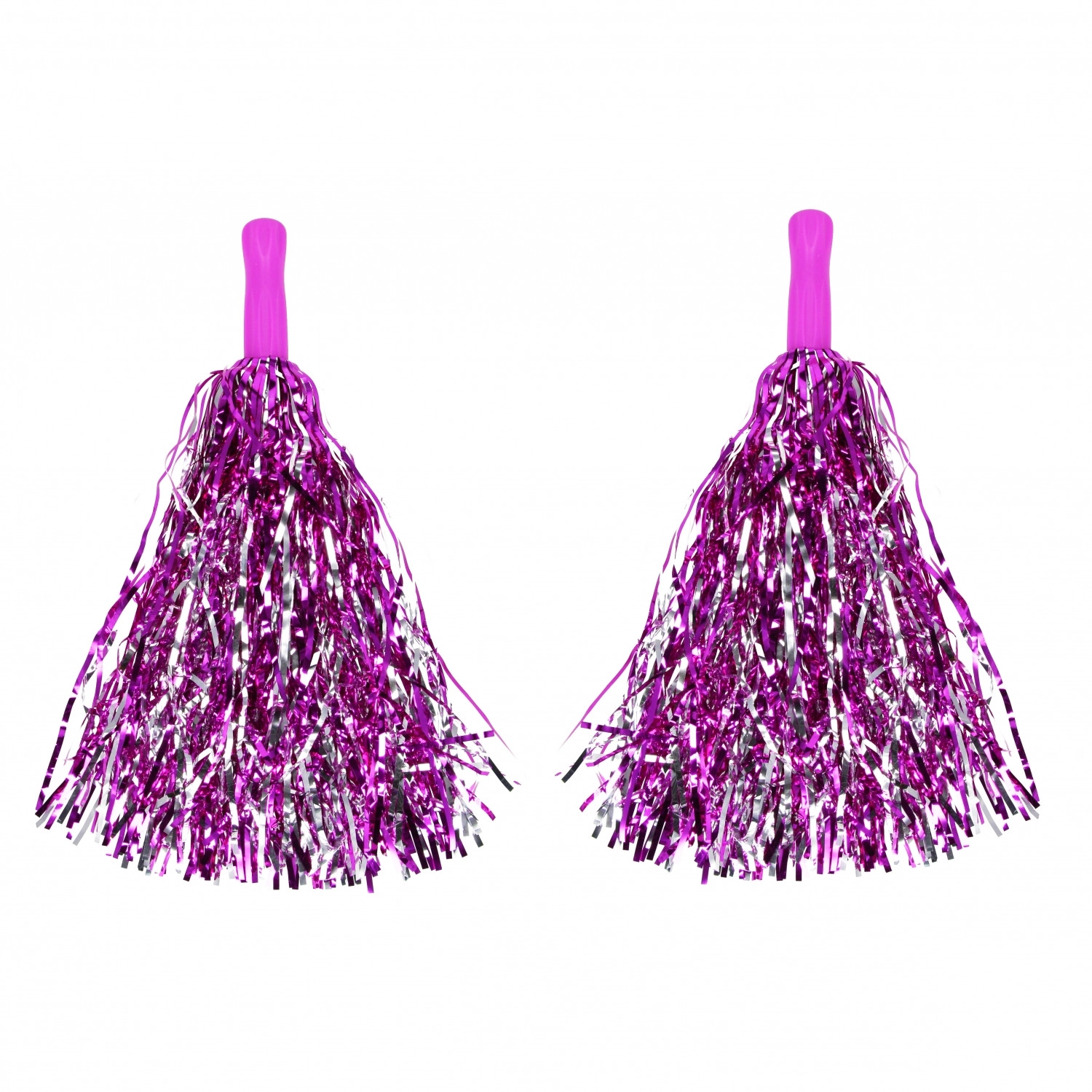 Dai energia e stile alle tue esibizioni. Questi pompon rosa con frange metalliche in rosa e argento creano, quando vengono agitati, un effetto visivo d’impatto perfetto per feste, eventi scolastici, partite sportive e coreografie di danza.