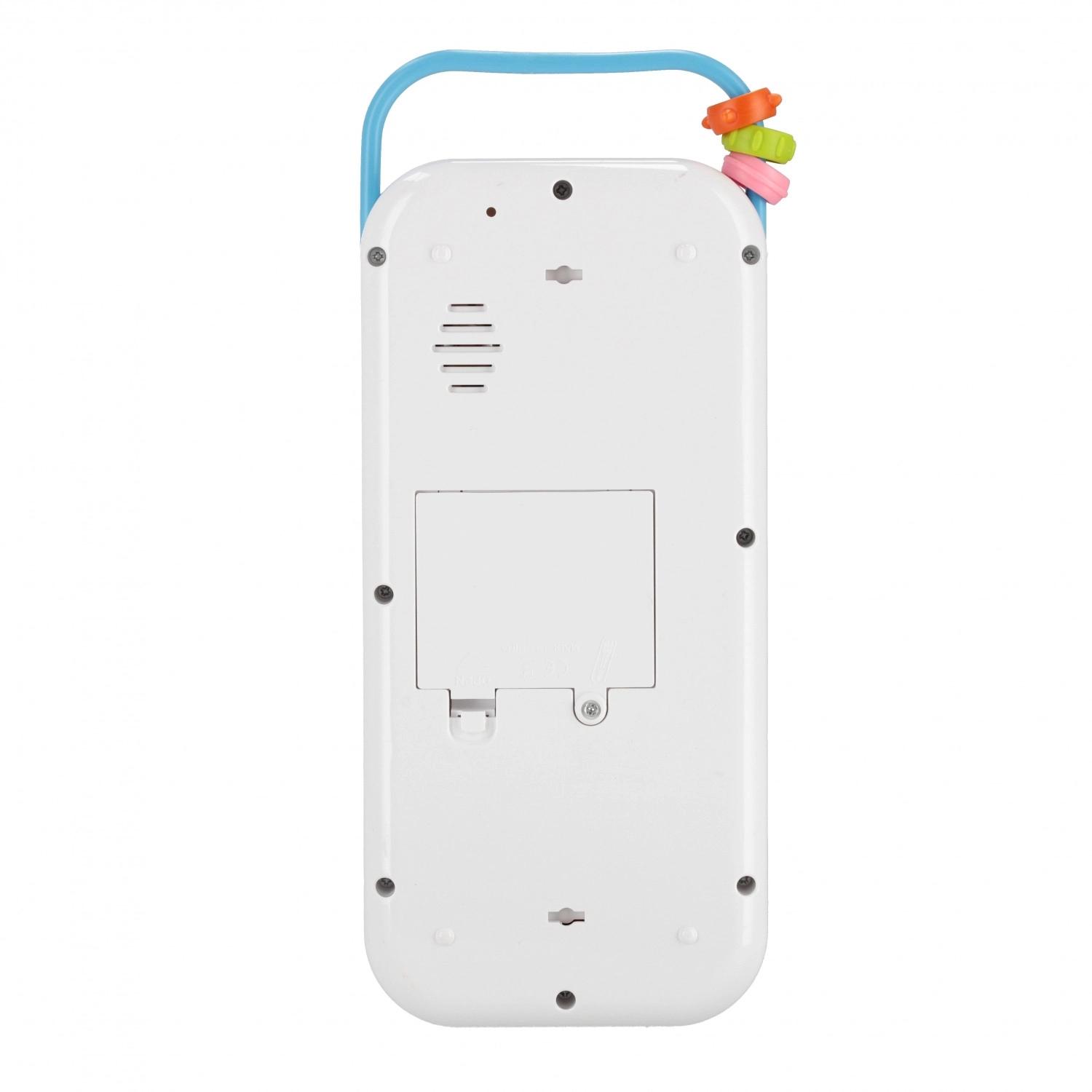 Pulsanti intuitivi per accensione e suono, struttura leggera e maniglia blu con anelli per un trasporto comodo dalle piccole mani.