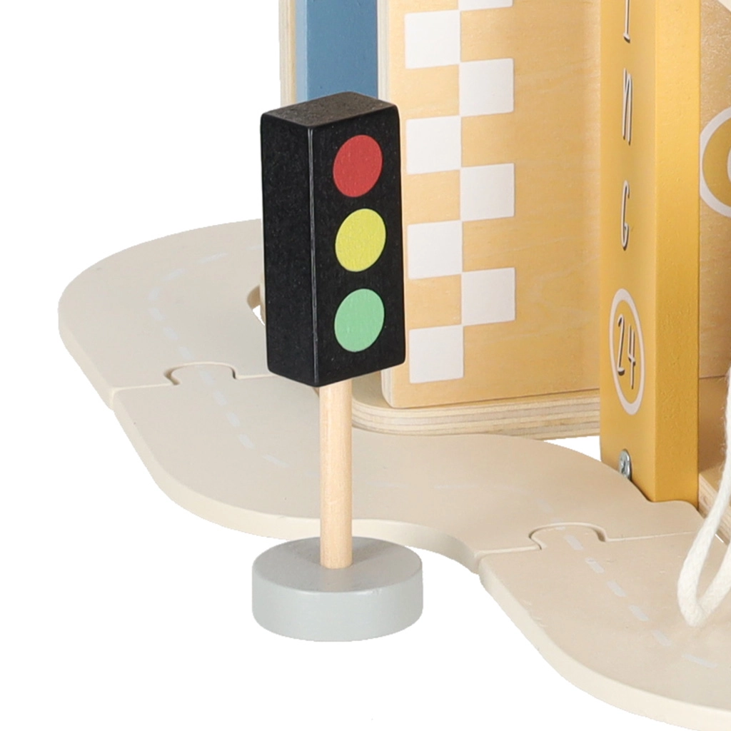 Inclusi colonnina, segnali, sbarra e semaforo per imparare le regole stradali e ricreare scenari come rifornimento, sosta o precedenza.