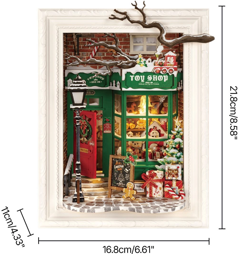 Entra in un mondo in cui i sogni diventano realtà. La mini bottega dei giocattoli di Babbo Natale del brand Rolife si distingue per elementi realistici: dalla lanterna illuminata e le porte rosse all’albero di Natale con berretto di neve, fino alle pareti in mattoni rossi e ai regali in vetrina. Grazie all’illuminazione LED, il modello acquista un’atmosfera unica e diventa una decorazione che non passa inosservata.