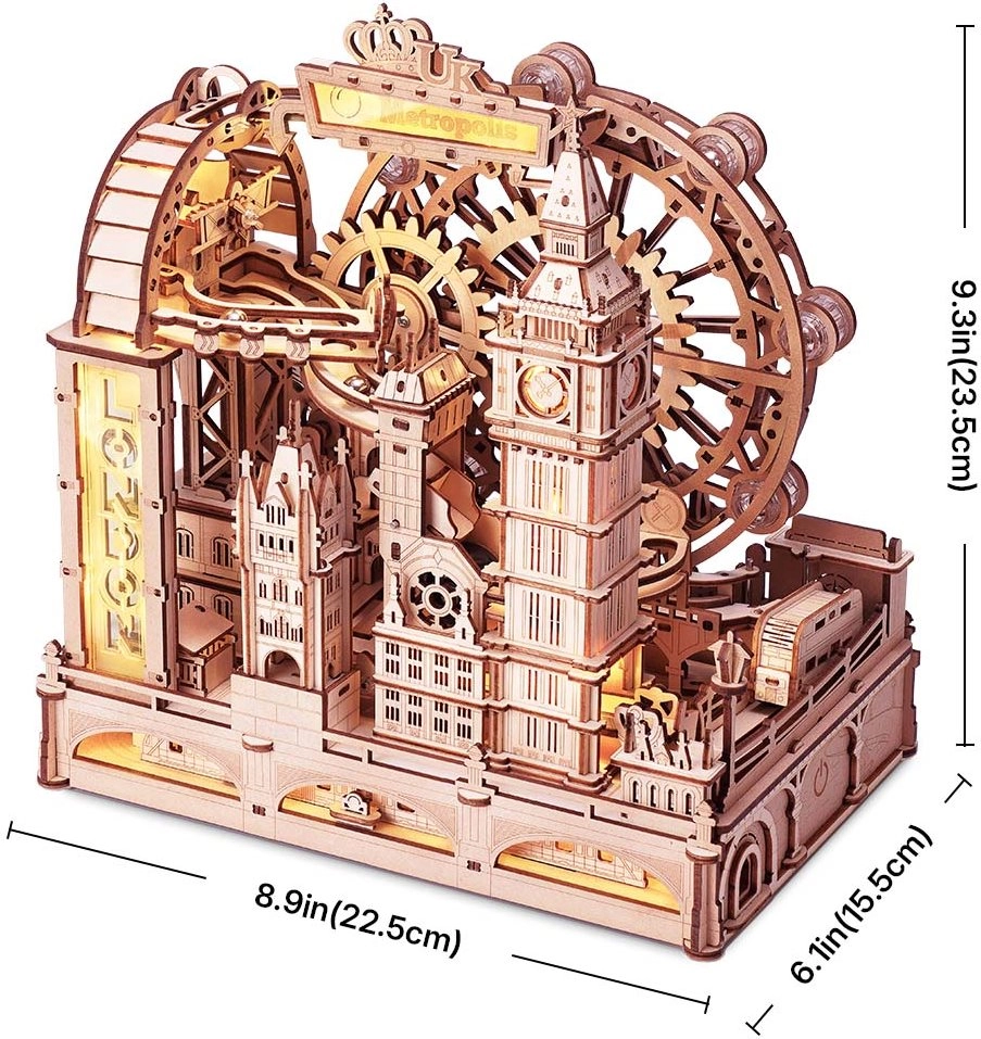Porta l’atmosfera di Londra direttamente a casa tua: le miniature dettagliate del Big Ben, del Tower Bridge e del London Eye prendono vita in un ingegnoso modello meccanico con pista a biglie. Grazie ai pezzi pretagliati al laser in pregiata betulla multistrato e a un sistema di trasmissione ben progettato, potrai goderti un montaggio preciso e un funzionamento fluido. Dettagli realistici, pista a biglie meccanica con motore, sviluppo del pensiero tecnico e della motricità fine, 431 pezzi e difficoltà medio‑alta promettono un’esperienza entusiasmante per ogni creativo.