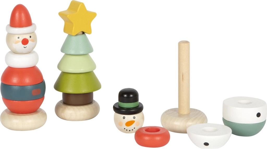 Magico gioco impilabile in legno a tema Natale – Babbo Natale, alberello di Natale o pupazzo di neve. I colorati elementi si infilano facilmente sul piolo, sviluppando motricità fine, coordinazione mano–occhio e l’apprendimento di forme e dimensioni. Realizzato in legno di alta qualità, ideale come regalino per il calendario dell’Avvento e come elegante decorazione natalizia. Prezzo per 1 pz, varianti spedite casualmente.