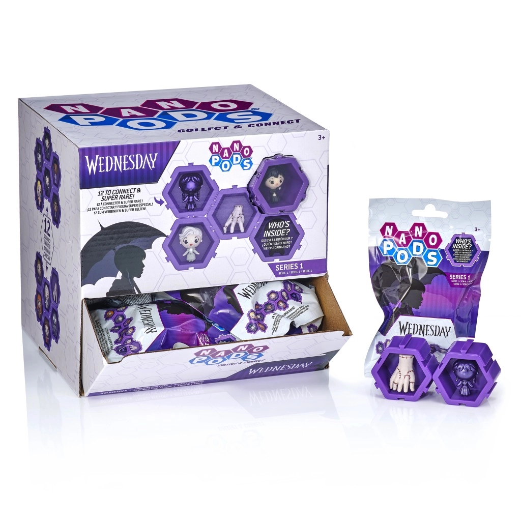 La serie Nano Pods offre mini figure compatte da collezione dal mondo di WEDNESDAY, racchiuse in capsule esagonali collegabili. Ogni confezione contiene un personaggio casuale, per un unboxing ricco di suspense e divertimento. Grazie al design intelligente delle capsule, puoi creare facilmente la tua parete espositiva o motivi creativi.