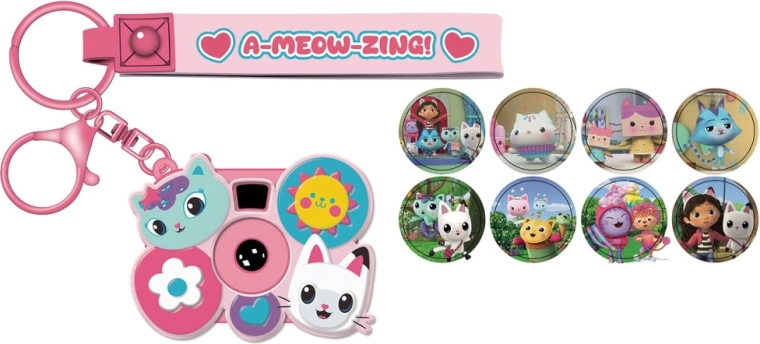 Scopri un divertimento magico in viaggio con il portachiavi con proiettore ispirato alla serie amata GABBY’S DOLLHOUSE. Leggero e pratico, entra perfettamente in tasca o nello zaino scolastico e offre ai bambini momenti di fantasia giocosa ovunque e in qualsiasi momento.