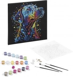 Scopri il relax creativo con il set per dipingere con i numeri. Su una tela nera con motivo del cane potrai creare facilmente un quadro passo dopo passo grazie alle aree numerate e ai colori inclusi. Colorazione semplice, risultati precisi e contrasto d’impatto sullo sfondo nero garantiscono il piacere della creazione e una splendida decorazione d’interni.