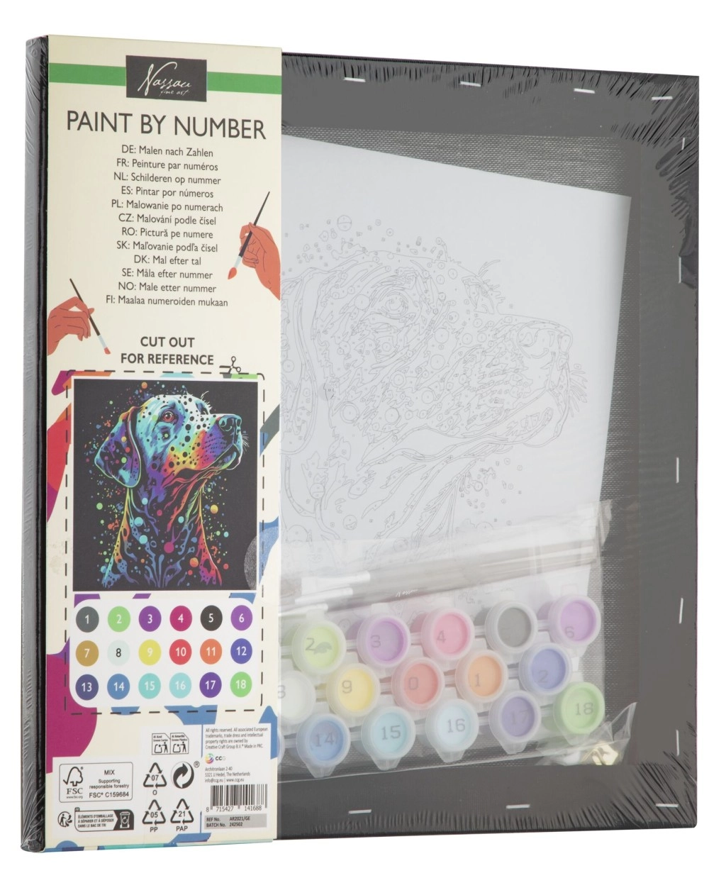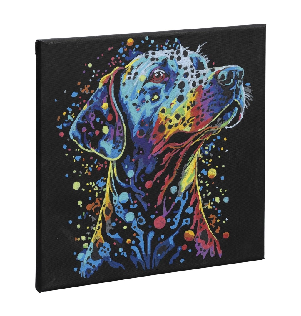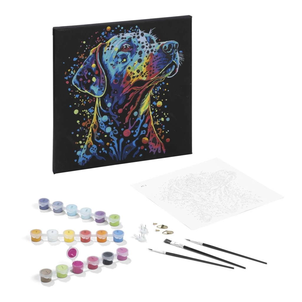 Dipingere con i numeri è un ottimo modo per rilassarsi e al tempo stesso realizzare un’opera originale. La tela nera dona al motivo del cane un contrasto marcato e un aspetto elegante che risalta in ogni ambiente. Il set è adatto sia ai principianti sia agli esperti: basta seguire numeri e colori.