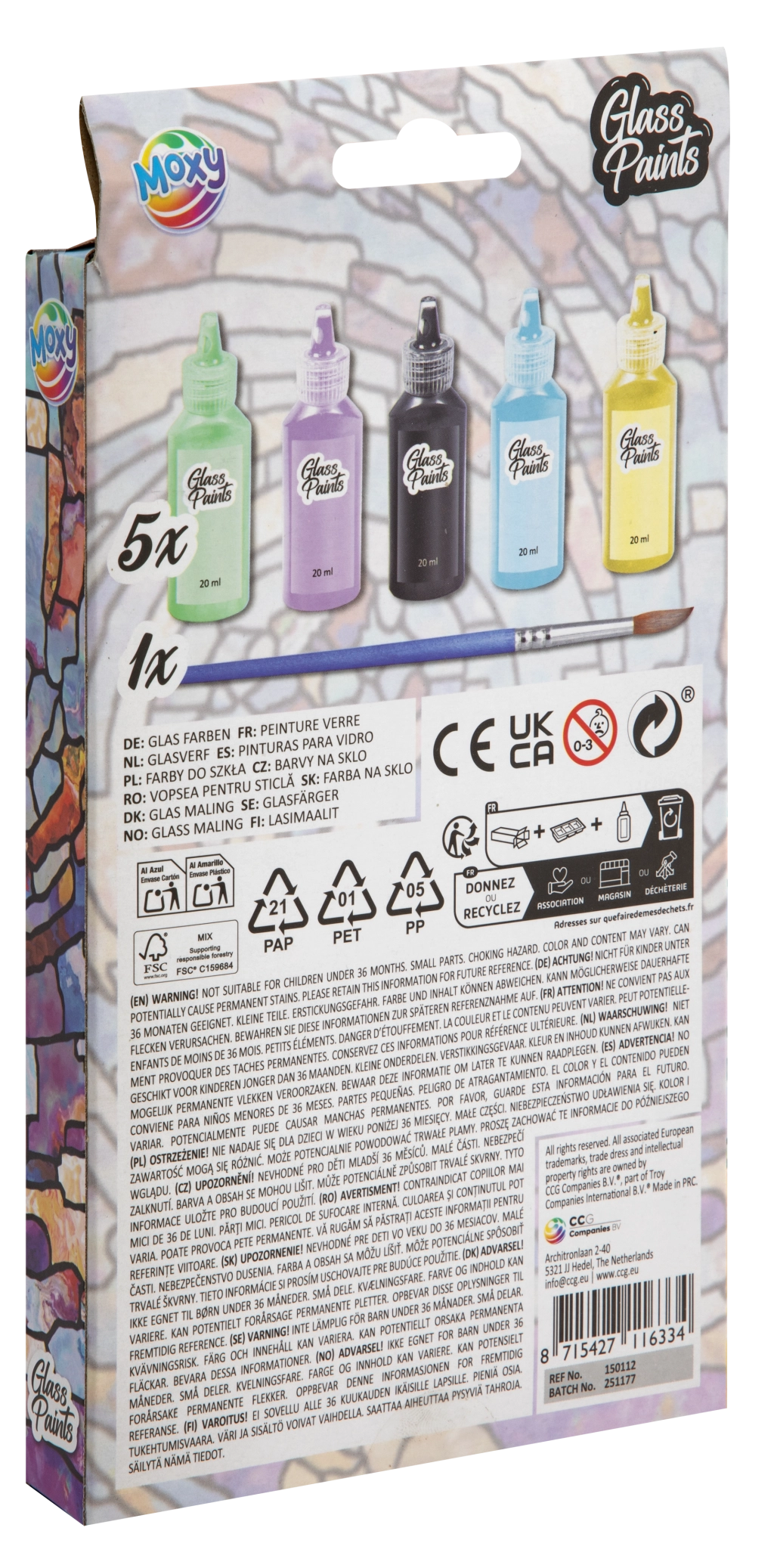 Scopri la gioia di dipingere sul vetro con questo pratico set, perfetto per il fai‑da‑te domestico e progetti creativi. Grazie alla ricca pigmentazione e alla facile miscelazione, otterrai splendide sfumature e effetti di colore.