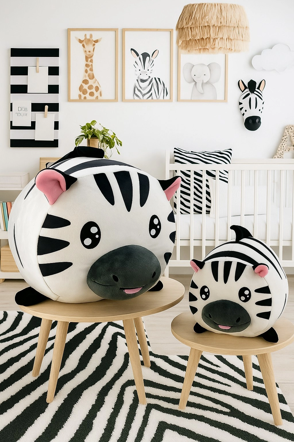 Delizioso set di due zebre di peluche – mamma e cucciolo – in materiale extra morbido per il gioco, le coccole e la decorazione. La zebra più piccola è ideale come primo pupazzetto, quella più grande funge da comodo cuscinetto per i viaggi o per la cameretta. Grazie alla lavorazione di qualità, al viso ricamato sicuro e alla possibilità di lavarlo in lavatrice, questo set offre comfort, sicurezza e lunga durata.