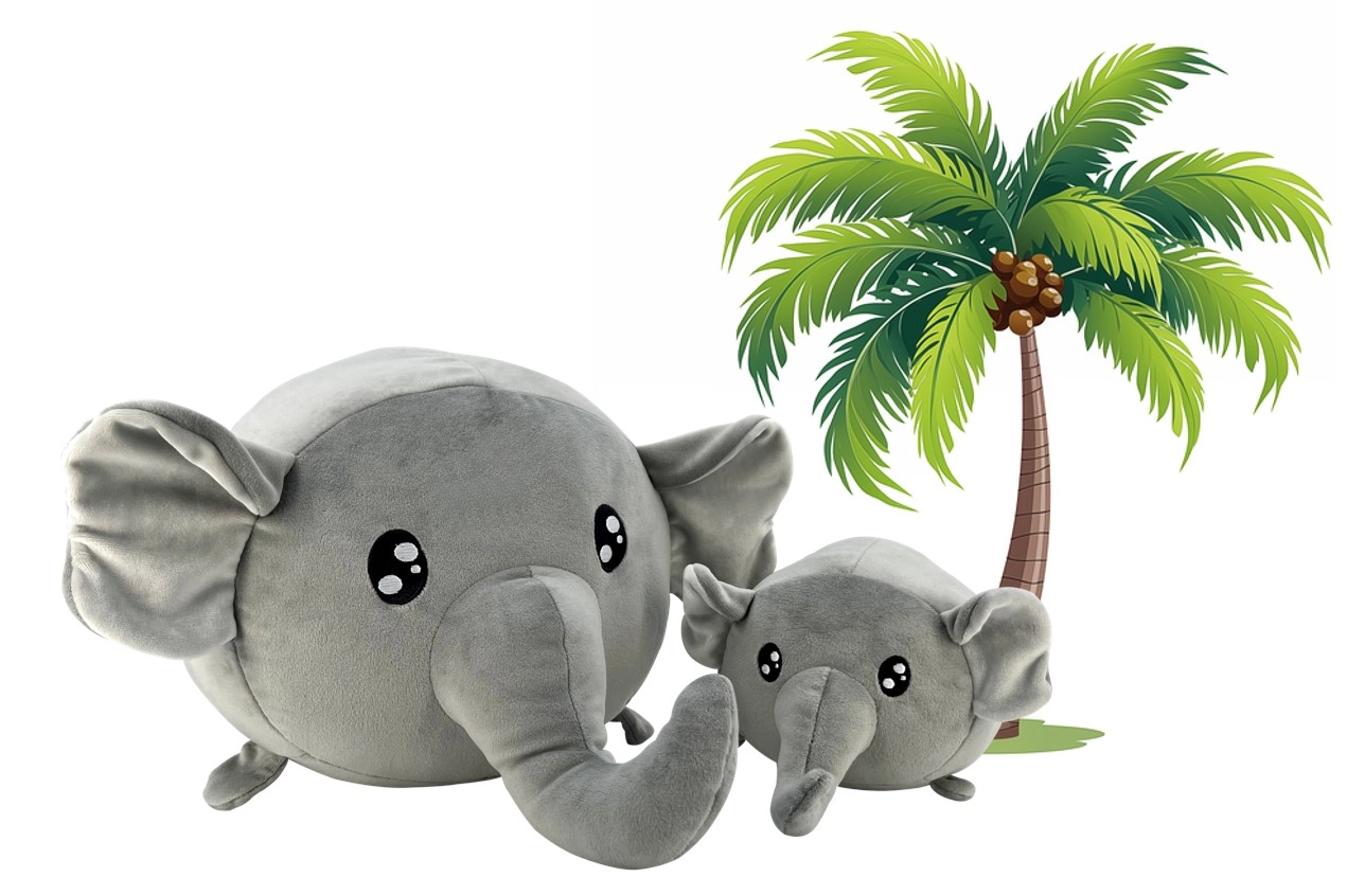 Delizioso set di due elefanti di peluche – mamma e cucciolo – che offre abbracci morbidi, dettagli ricamati sicuri e comfort per bambini di tutte le età. Il piccolo elefantino è ideale come compagno coccoloso per neonati, mentre il più grande funge da comodo cuscinetto per i viaggi e la cameretta. Facile manutenzione con lavaggio a 30 °C.