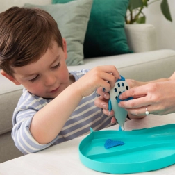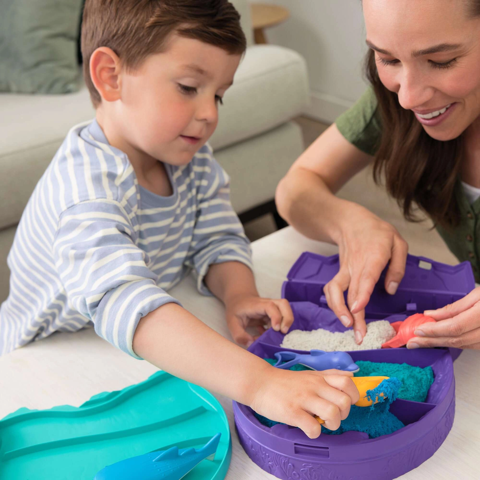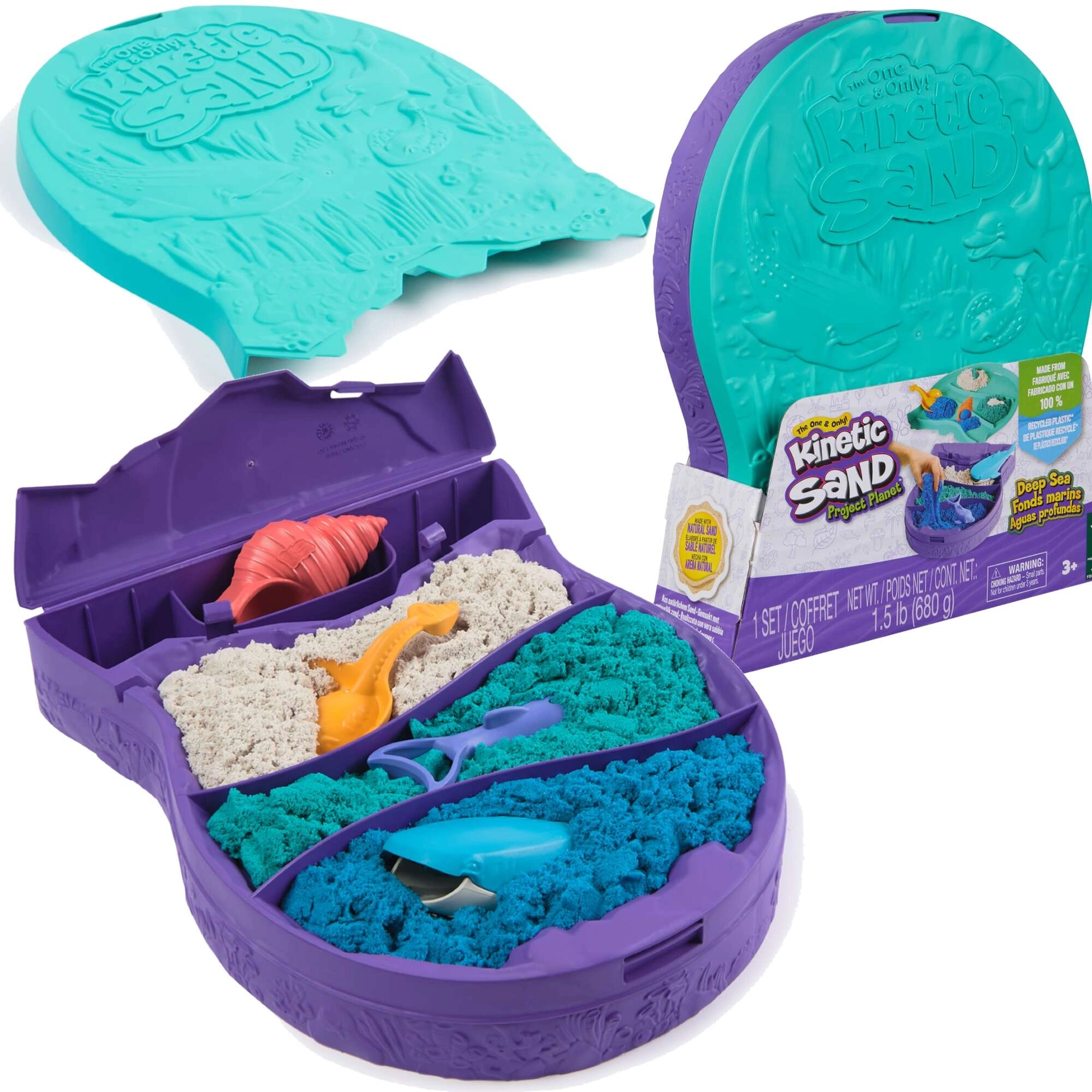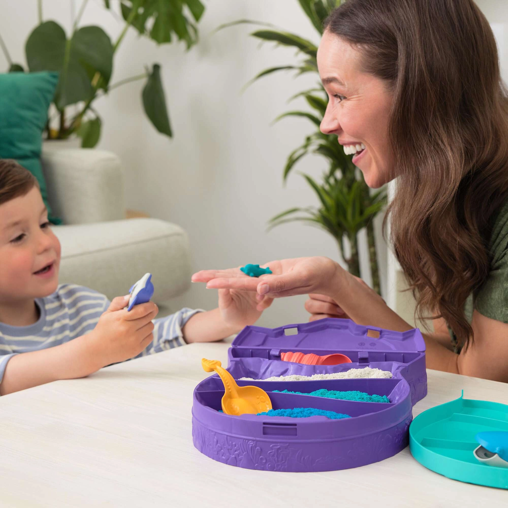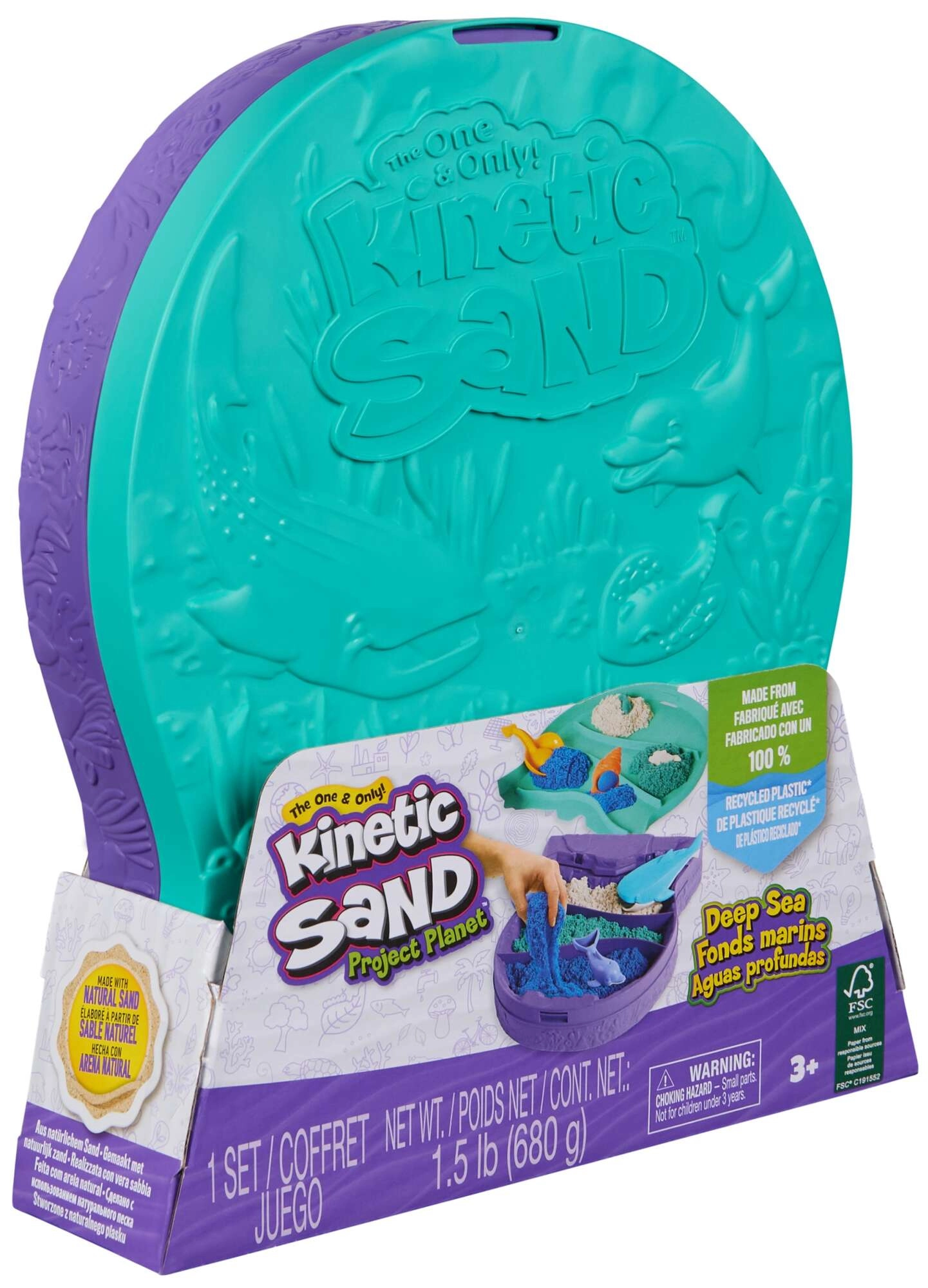 La sabbia cinetica Kinetic Sand riproduce la sensazione della sabbia bagnata, ma senza sporcare e senza seccarsi. I bambini possono modellare, tagliare, schiacciare e costruire con facilità, mentre allenano coordinazione e creatività. Il set Deep Sea offre una combinazione di blu, bianco e verde per creare divertenti scenari e forme sottomarine.