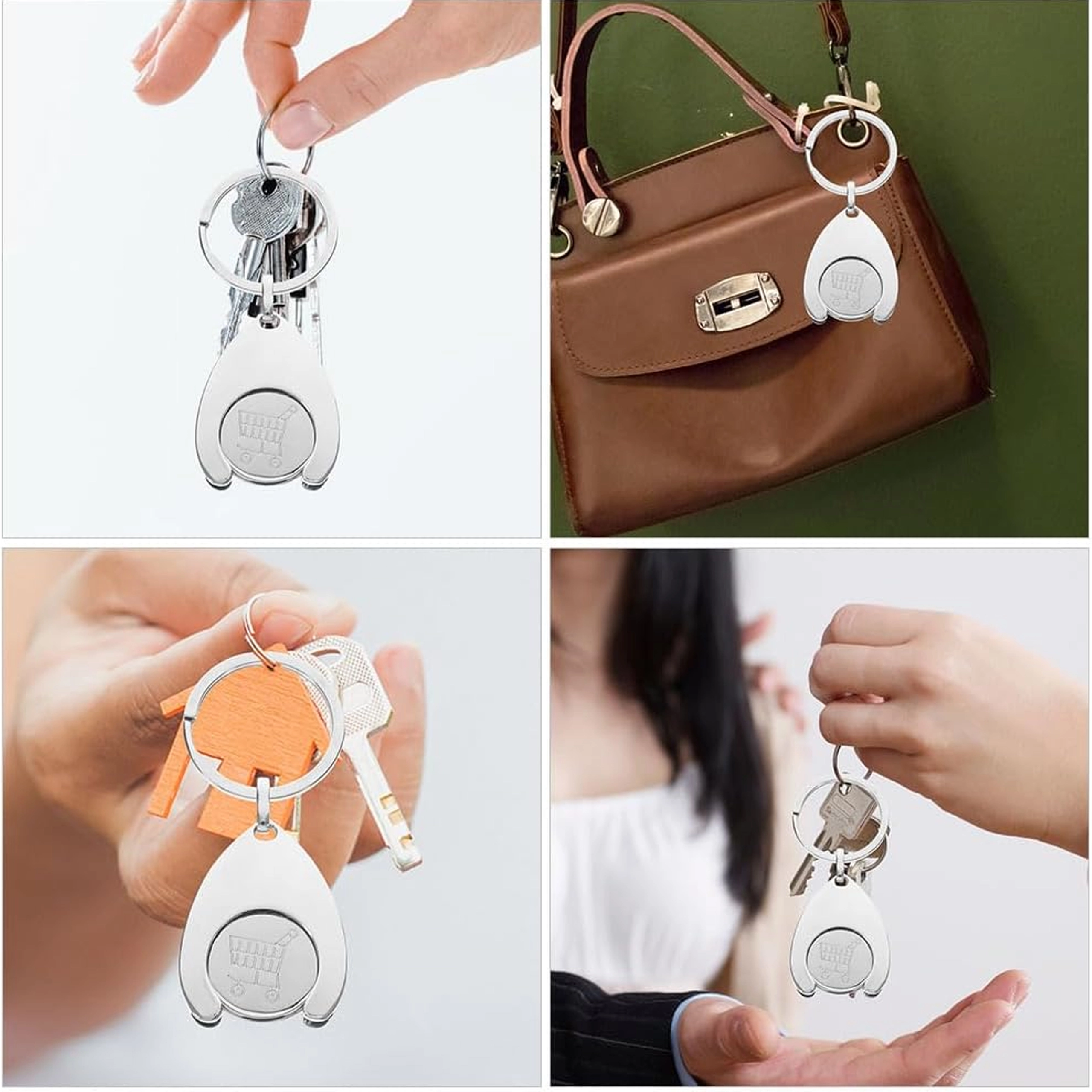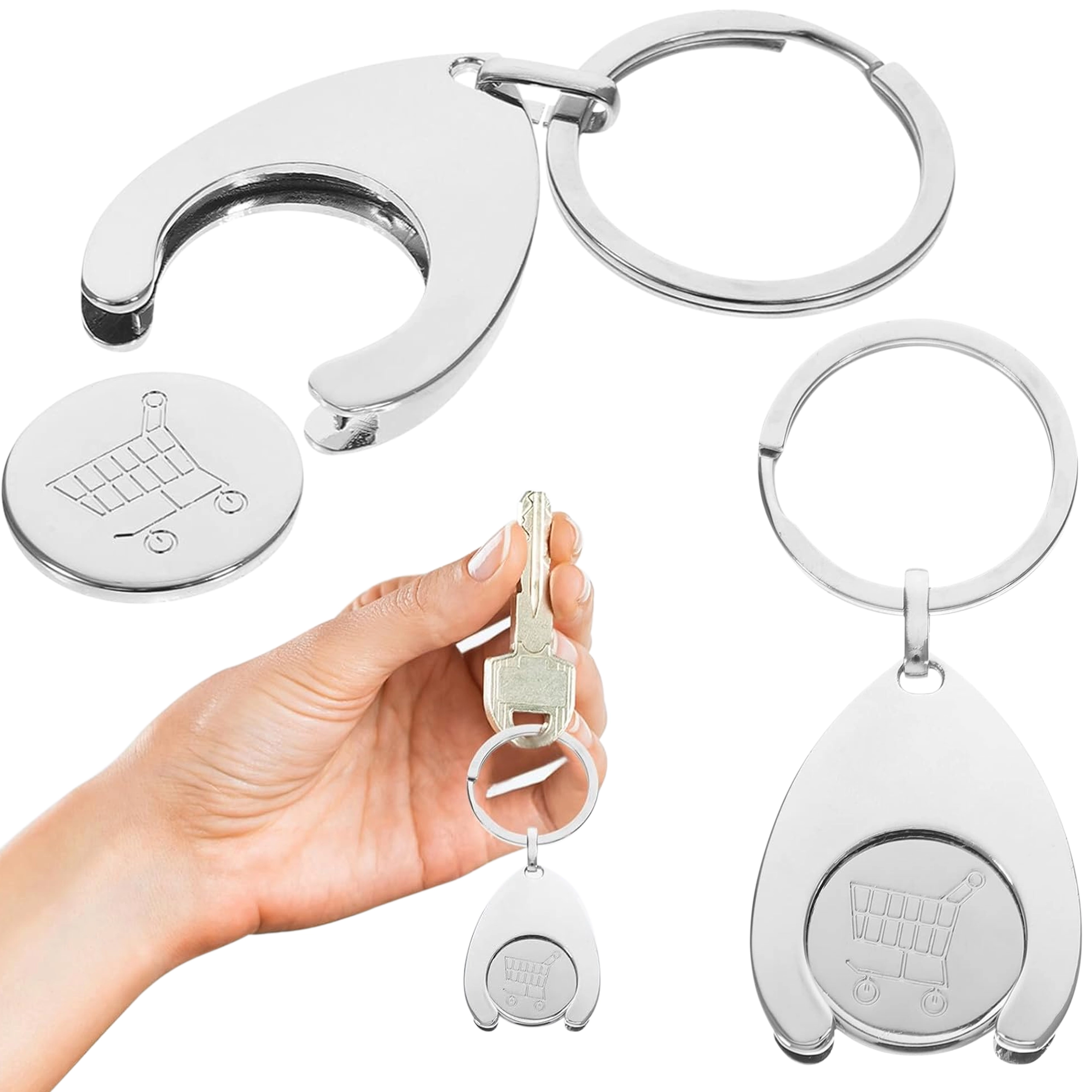 - Portachiavi in metallo 2 in 1 con gettone per carrello della spesa