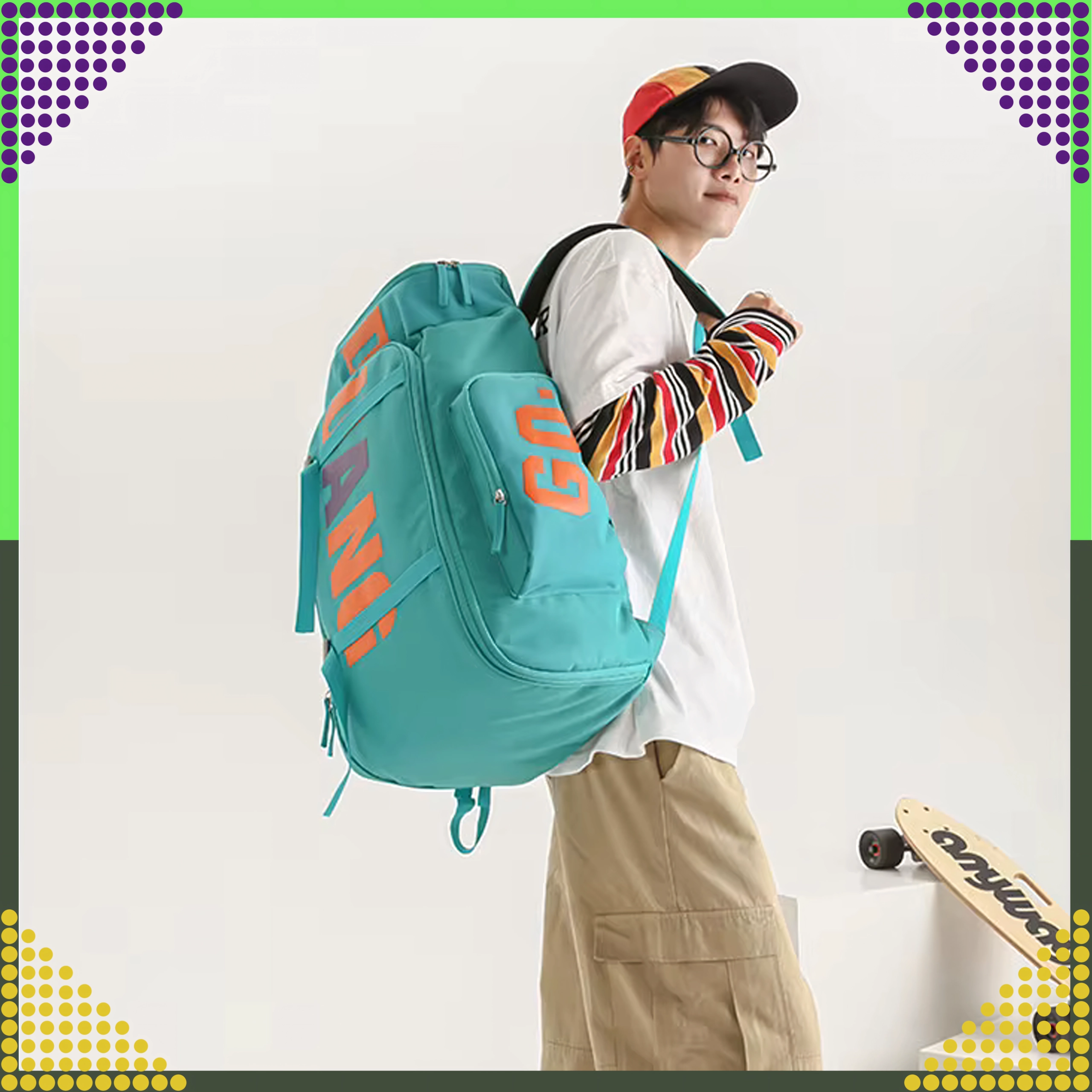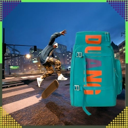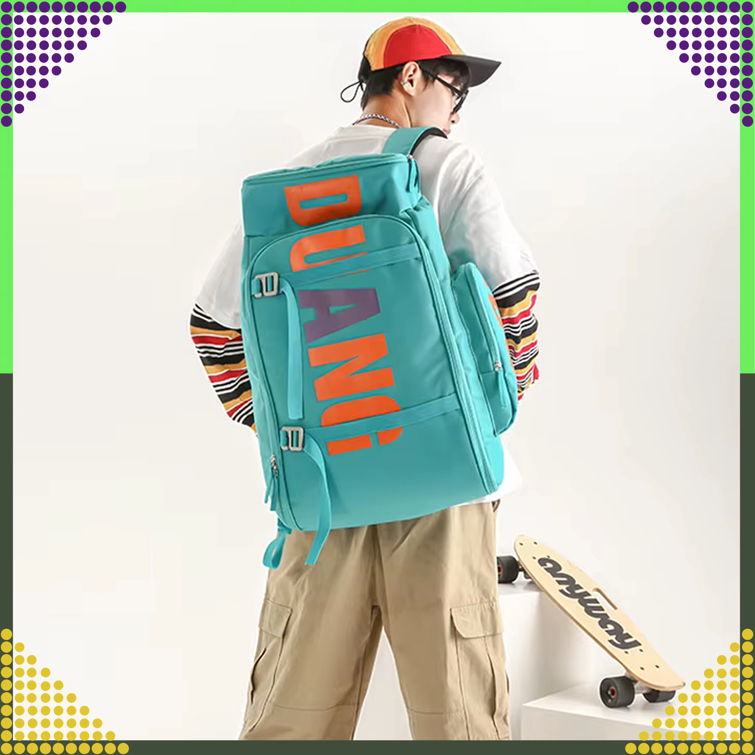 Zaino spazioso e resistente per giovani skater con capacità di 55 l, offre struttura robusta, tasche pratiche e comfort per l’uso quotidiano. Perfetto per la scuola, le gite e per andare in skateboard.