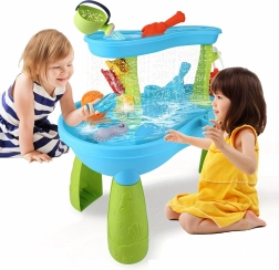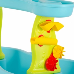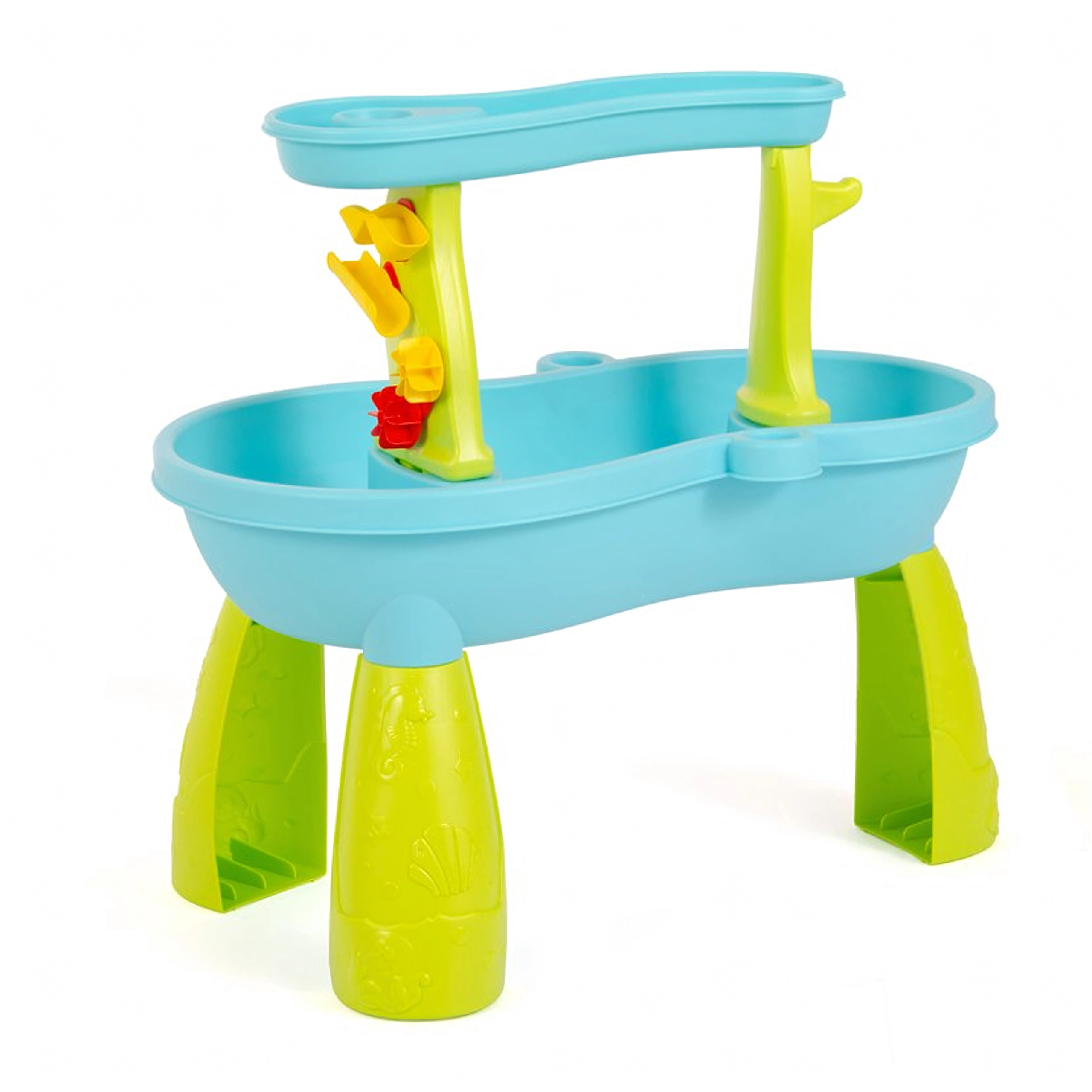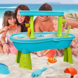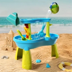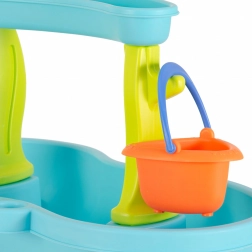 Divertente tavolo acqua e sabbia 2 in 1 che offre ai bambini ore di gioco all’aperto. Include accessori colorati, canalette e mulinelli d’acqua, formine e attrezzi per la sabbia oltre a secchielli e annaffiatoi. Sostiene stimolazione sensoriale, motricità fine e gioco creativo con acqua e sabbia – ideale per giardino, terrazza e spiaggia.
