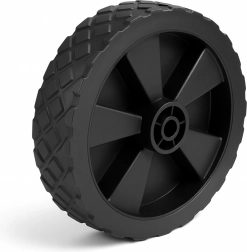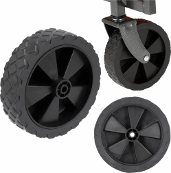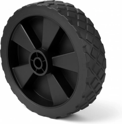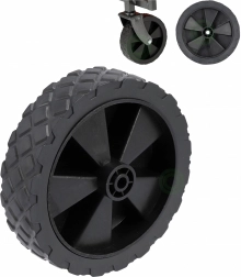 Affidabile ruota di ricambio con battistrada robusto che garantisce presa sicura e movimento fluido su diverse superfici, dalle pavimentazioni ai vialetti del giardino. Grazie alla struttura leggera ma solida con centro a raggi, la ruota si monta facilmente sull'asse e offre stabilità durante il trasporto del carico.