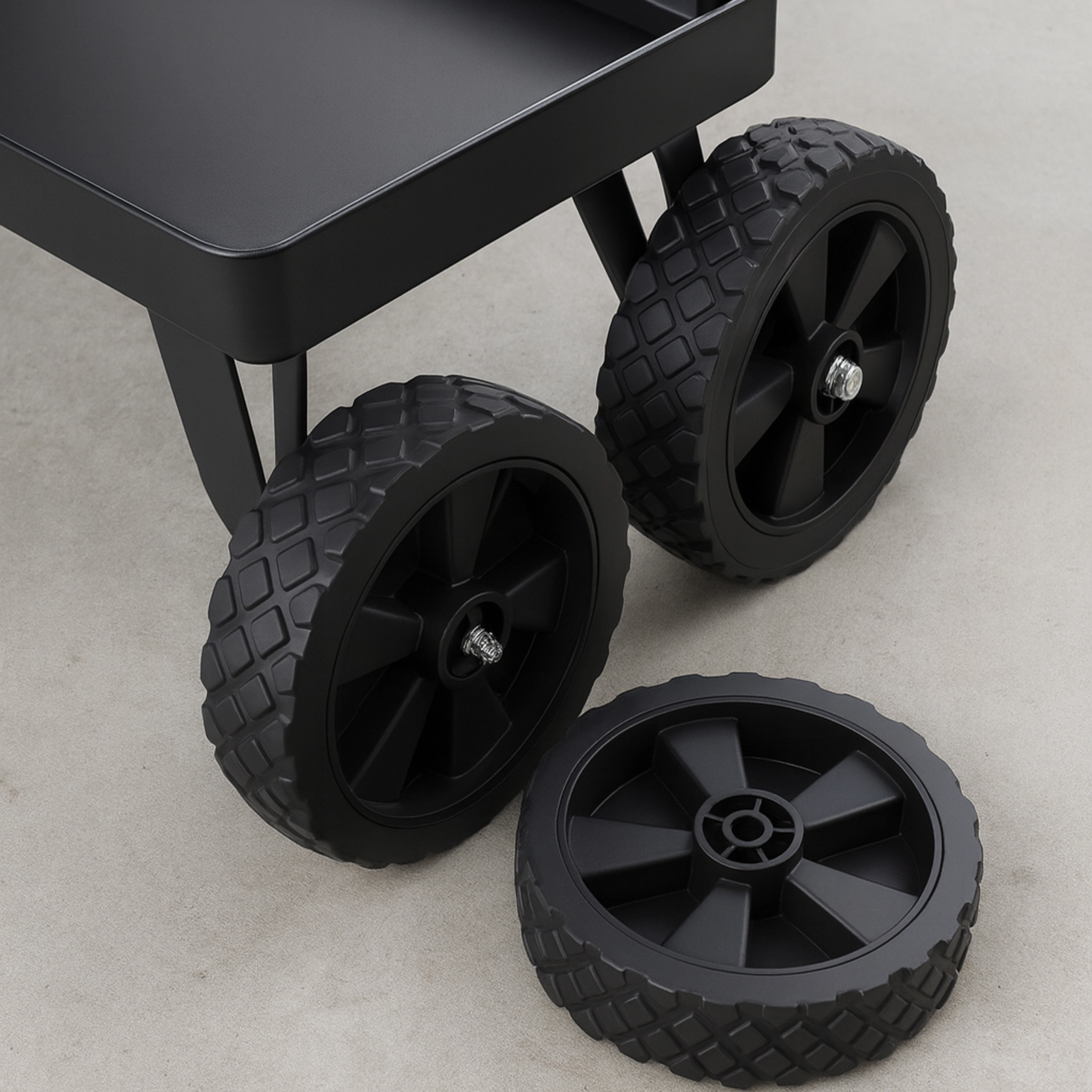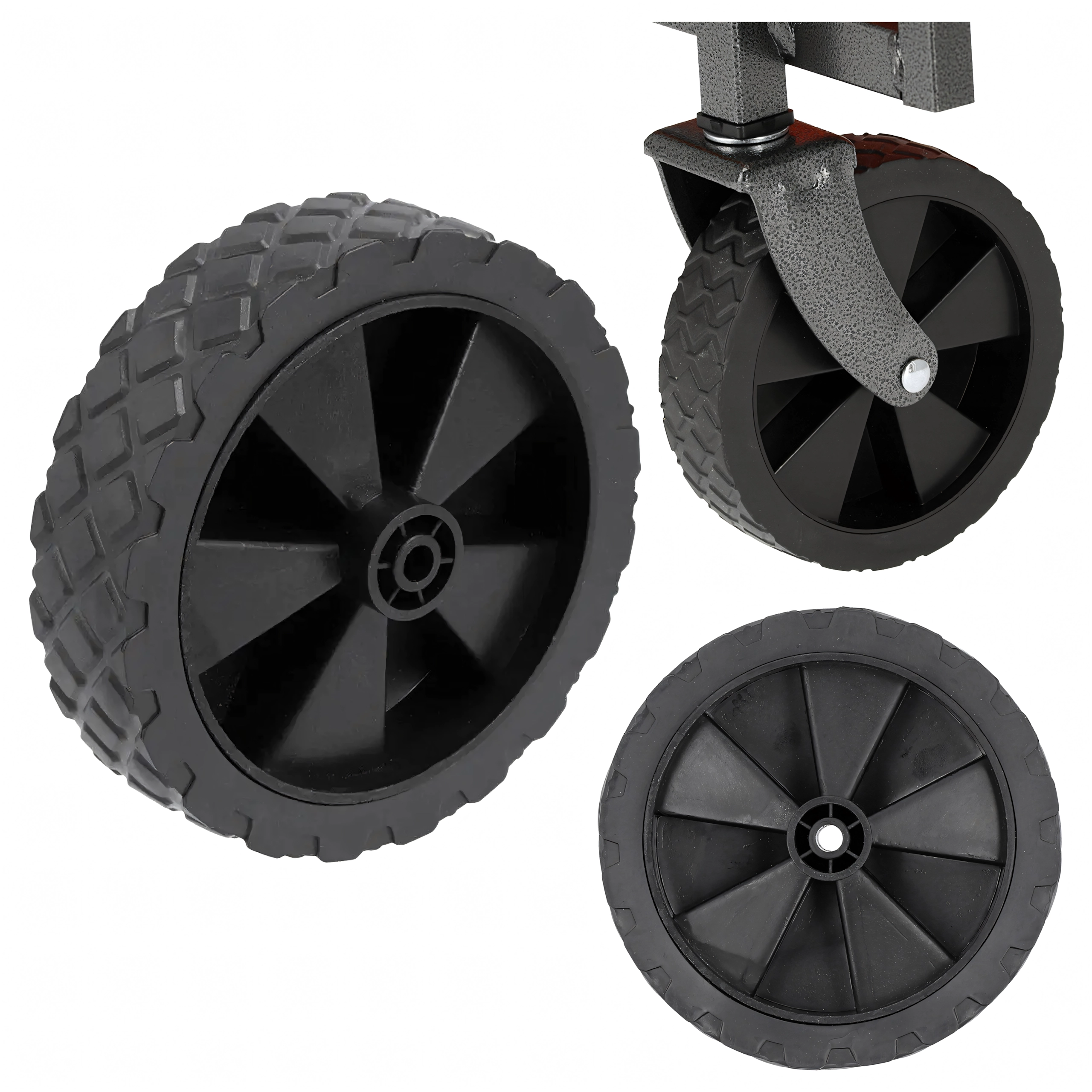 Il materiale in PVC resiste all'umidità e alle condizioni meteo variabili, rendendo la ruota adatta all'uso tutto l'anno per carrelli pieghevoli, carretti a mano, carrelli da giardino e da movimentazione. È una soluzione rapida ed economica che prolunga la vita della tua attrezzatura.